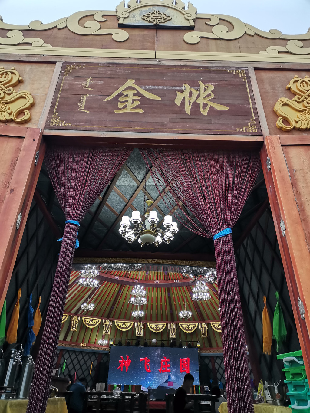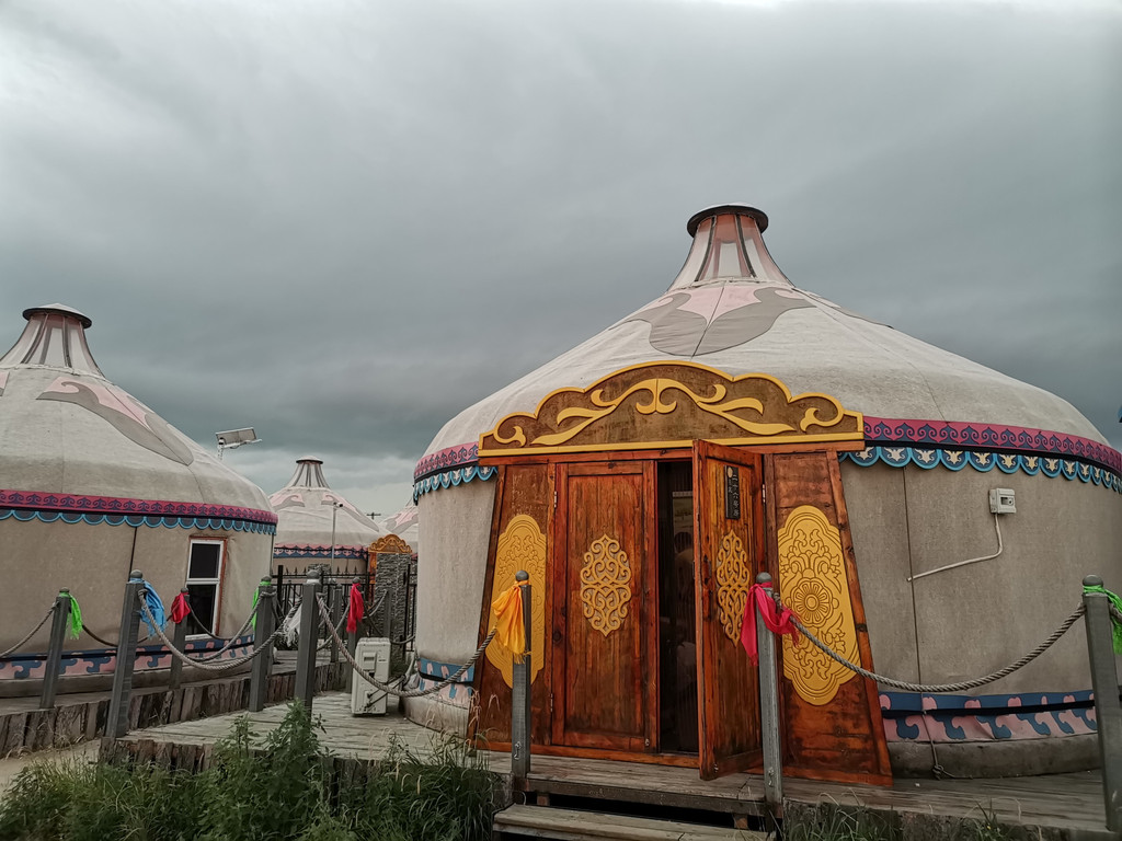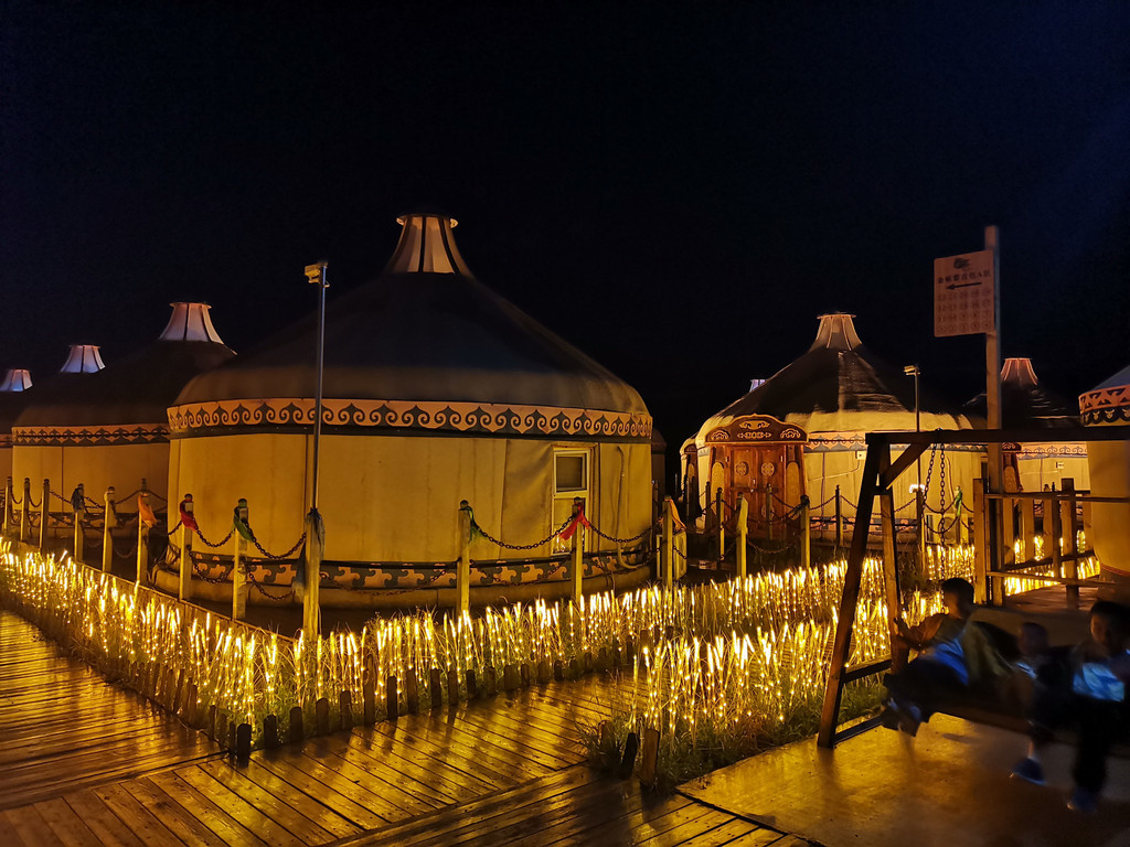 这里入住的是著名的“神飞庄园”大蒙古包,看外观就颇有电视剧的营帐气势,当中一个巨大的“金帐”是饭厅。记得提前预订金帐里的晚餐,这里的座位非常火爆。晚餐的特色有“烤全羊仪式”——大桌凡是点了烤全羊的,男主人女主人可以穿上蒙古服饰扮演王爷王妃上台参加开羊仪式,很是热闹。我微信视频号上有放一段视频。然后现场还有马头琴表演、草原民歌献唱等,整个晚餐过程娱乐性很强,建议体验。