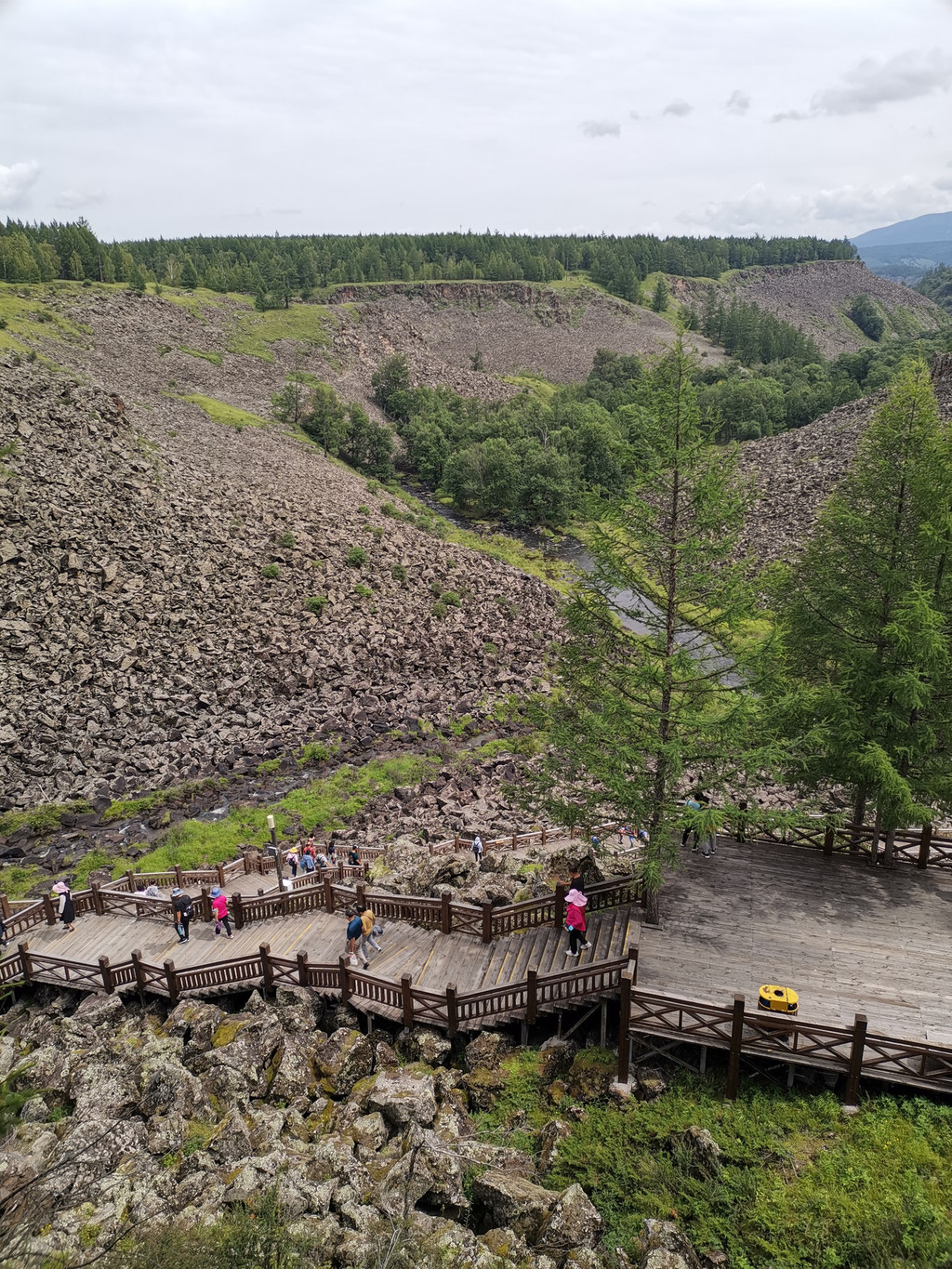 [D7]阿尔山市->阿尔山国家森林公园。阿尔山国家森林公园很大,一天玩不完,门票有效期48小时。自驾车开到天池服务区,住宿也在服务区。然后在服务区的大巴站坐各路大巴进入具体景点。主要有三条线路。线路一(最热门):石塘林-杜鹃湖-驼峰岭天池-大峡谷。线路二:三潭峡-地池(地池也可以转车去石塘林)。线路三:阿尔山天池。如果只有一天时间那就选线路一。有两天那就全都可以玩掉。注意每条线路只有最后一站有返程的车,所以比方说你走线路一,那么推荐游览路线是:先坐到驼峰岭下,玩好了去大峡谷,然后搭返程车,在杜鹃湖下车,玩好杜鹃湖再搭下一班返程车去玩石塘林。其中就两个天池需要爬山,其余都是基本平地,不太耗体力。风景真的不错,手机拍不出效果,需要亲眼去看。