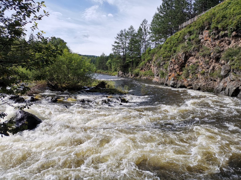 旁边就是中俄界河“额尔古纳河”,河对岸的俄罗斯住宅清晰可见,还可以花几十元乘坐“界河游艇”在界河中央游玩一圈。我在船上还跟对岸的两个俄国人挥手,他们居然回应了,也朝我挥手!