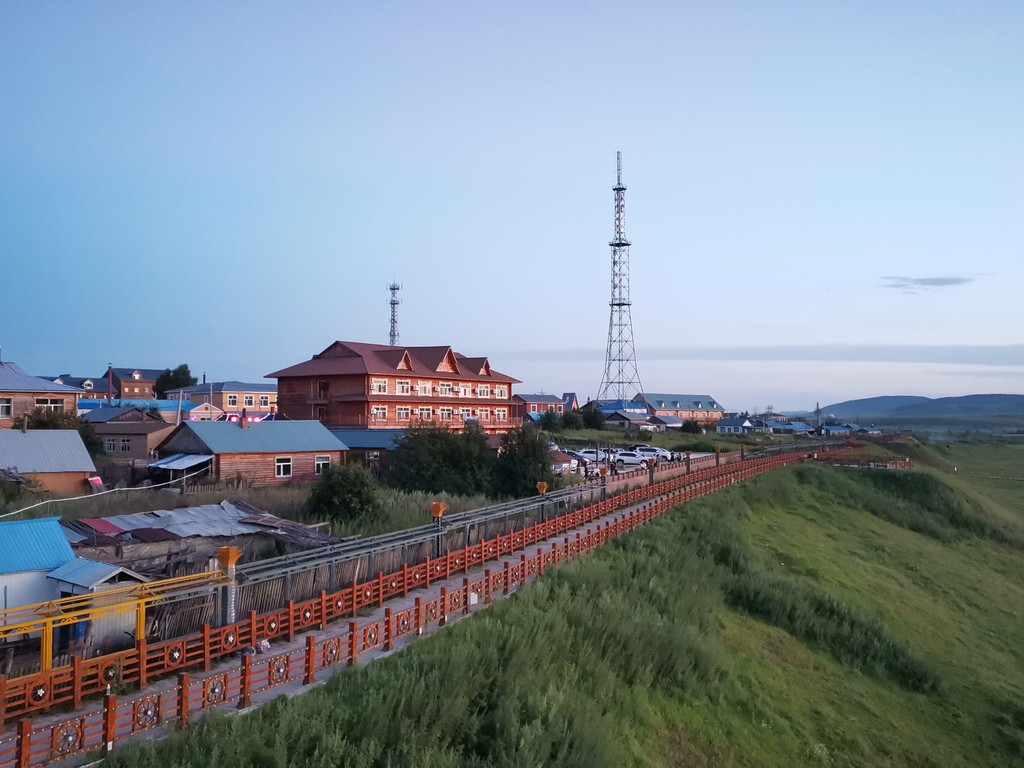 [D4] 室韦->黑山头。这天早晨在室韦的国门界合影留念后,就沿着额尔古纳河边的公路开了300+公里一直到达黑山头镇。这段路上你可以在高德地图上看看自己的位置,基本就是贴着国界线。我在途中还收到三次中国移动的短信提示我欧洲移动套餐价格和俄罗斯大使馆电话——移动信号以为我已经在俄罗斯了(-_-|||)。沿途可能会看见很多草甸已经开始“打草”(把多余的草困扎起来留着冬季给牛羊吃)了,每个草卷比半人还高,据说重500多斤。