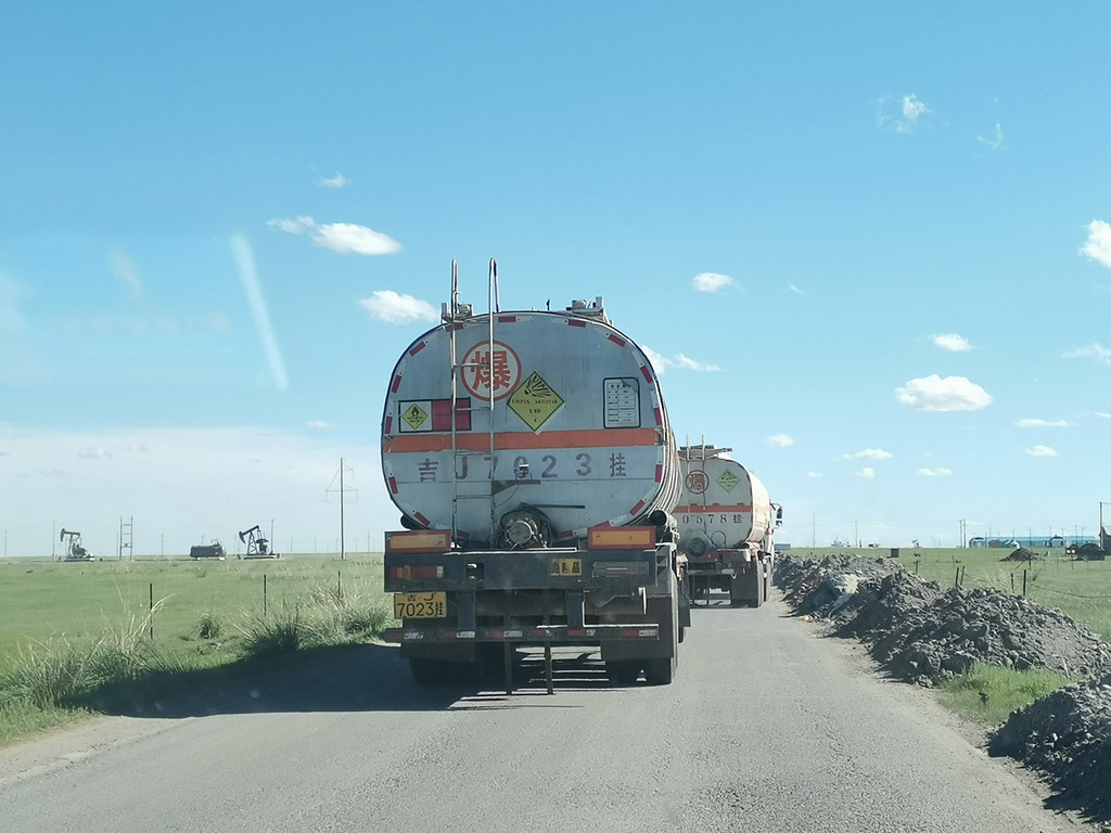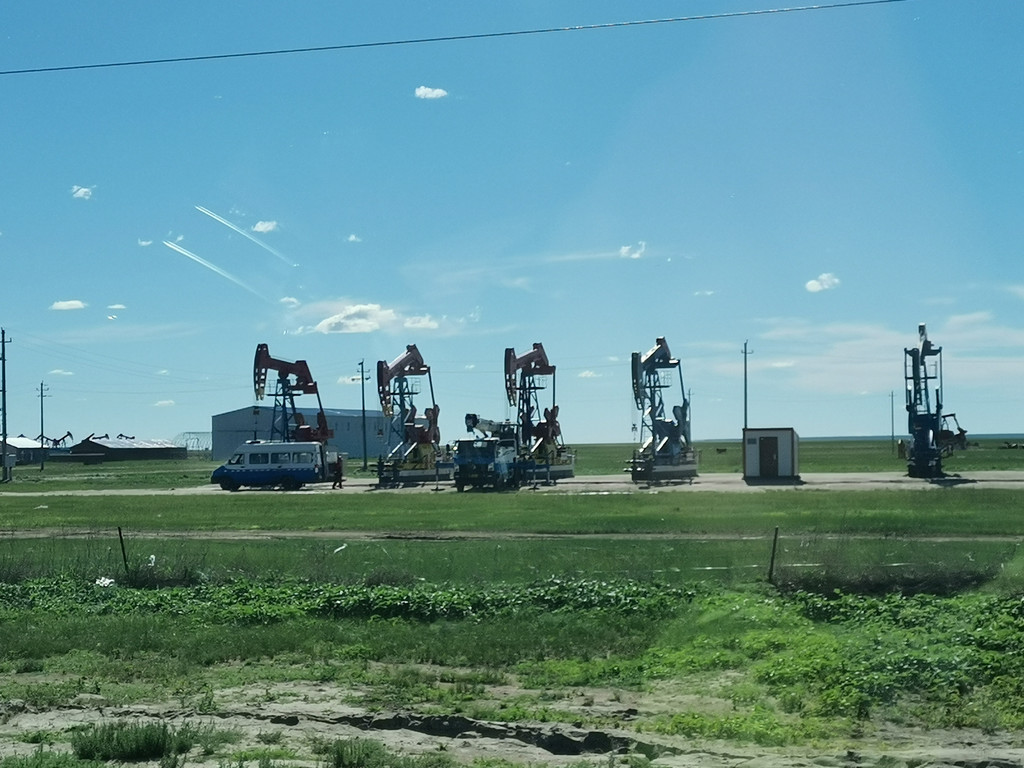 吃完就开始漫长的征途了,8小时车程去阿尔山。途中会看到一大片石油钻井,和无数运油的大卡车,还有一段是樟子松林——樟子松就是曾经蚂蚁森林里最贵的那个树种,攒能量永远遥不可及的那个:D。运气好的话,能看到草原上最后的绿皮火车,这是海拉尔开往阿尔山的路线,每天只有一班。