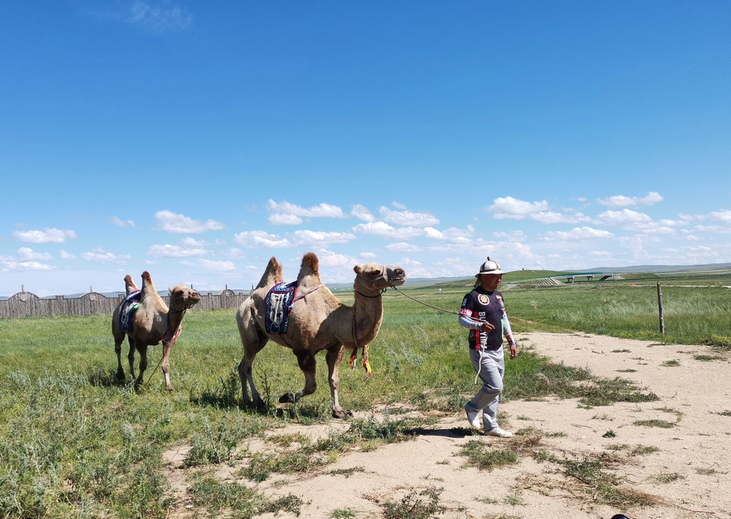 如果日程安排里有其它的滑草景区,也不需要来这里了。下午3:30在巴尔虎马之舞户外剧场看马术表演,这里有核酸检测点,候场时可以测个核酸,挺棒的。马术第一个节目必看,有一百匹马出场,演出现场套马,那个场景超级震撼。后面还有马上倒立、马上隐身、骑射、六人三马等都满精彩的。中间穿插一些蒙古舞蹈和蒙古歌曲,总的来说值得一看。(没有照片只有视频了,这里没法发,自己脑补吧。)我还在巴尔虎弄了个骑骆驼的合影,50元。