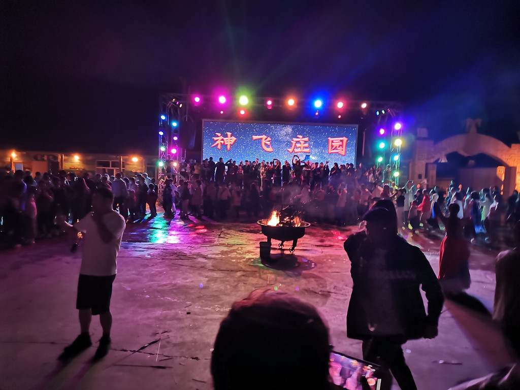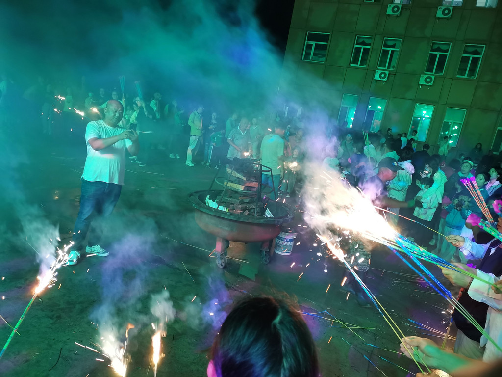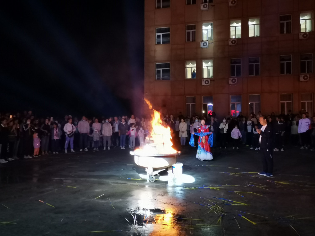 晚上9点有篝火会!夜幕降临后大帐的营灯点亮,然后会给游客们发放手持烟火,搬出一个放满木柴的大火盆,十几分钟后点火仪式开始。然后就是全体一起围着火盆跳圆圈舞等,没玩过的必须体验一下。就是习惯早睡的娃可能没法参加了。