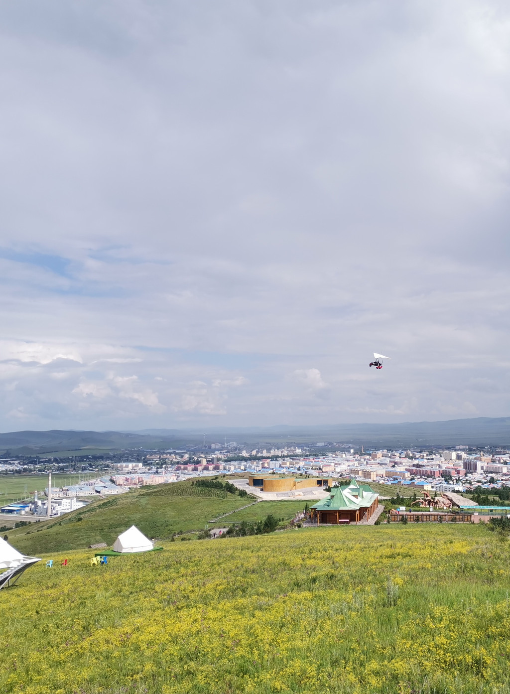 然后在额尔古纳我们玩了额尔古纳湿地公园(不是额尔古纳国家湿地公园,两个名字很像,内容不一样,看网上好像另外那个也蛮好的),这个公园主要在一座山上,可以居高远眺额尔古纳城和另一侧的半林半草原风光,园内的格桑花等野花也很漂亮,