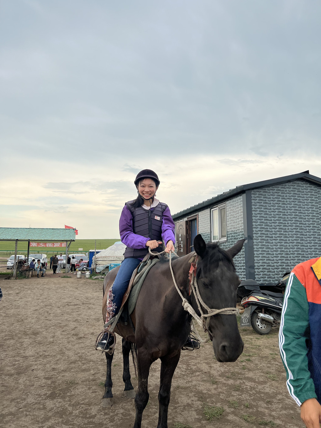 黑山头镇是牧民区,很多家牧民提供骑马服务,到了先体验个草原骑马,根据距离价格100~1300不等(听说1300那个能骑上一整天,基本就是横跨大草原那种),我对骑马没那么大兴趣,只骑了一个30分钟左右的。