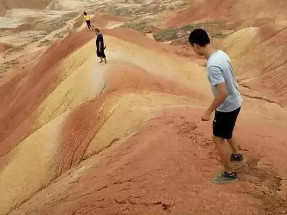 终于到山顶啦。在沙漠里走路,才知道什么是举步维艰。沙子那么软、那么滑、那么细,有劲根本使不上。