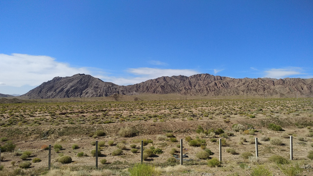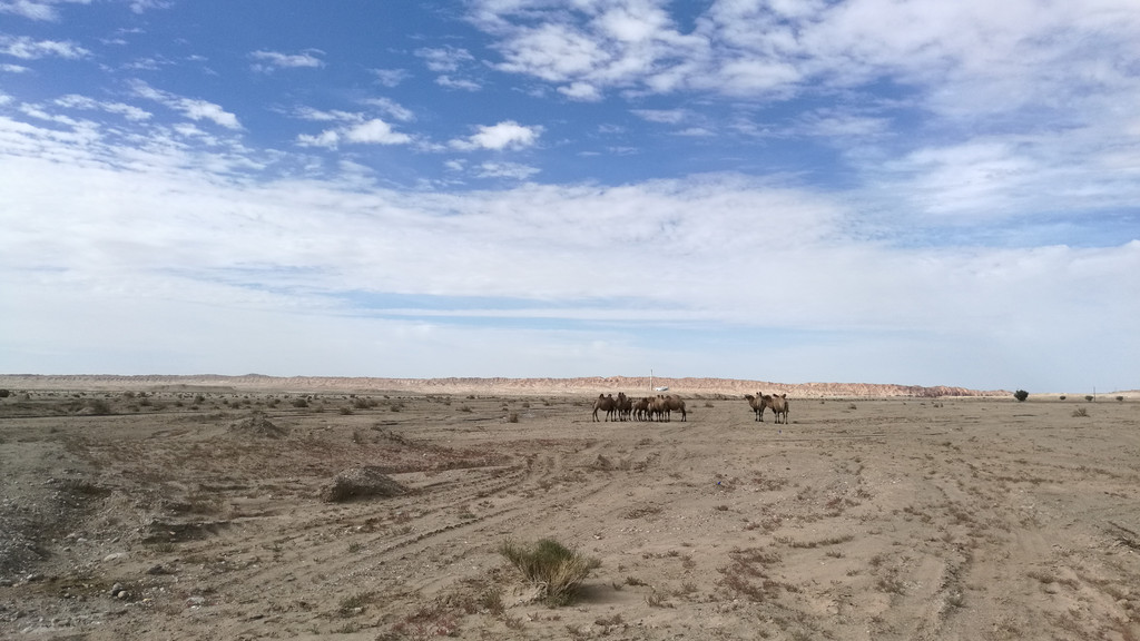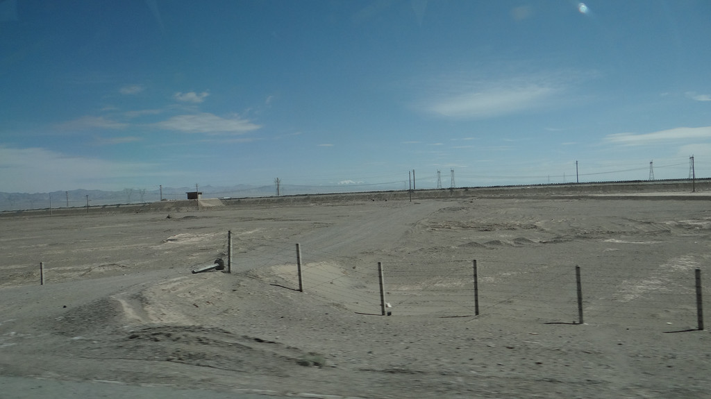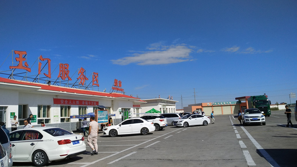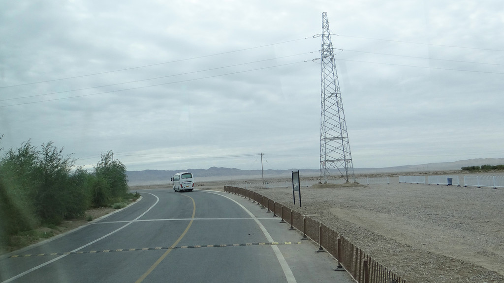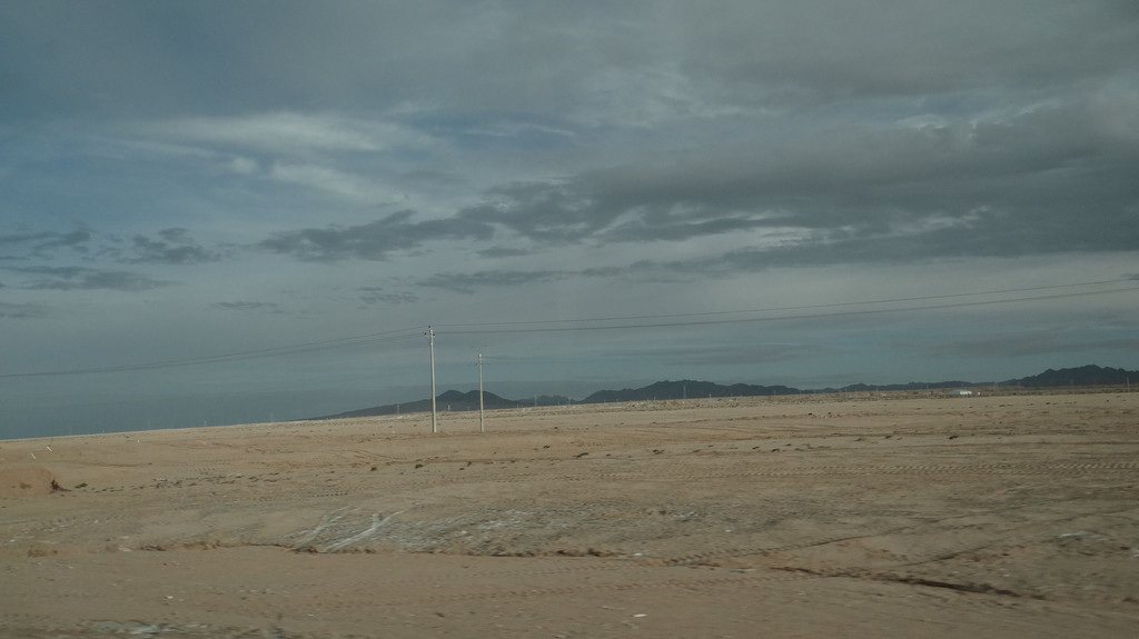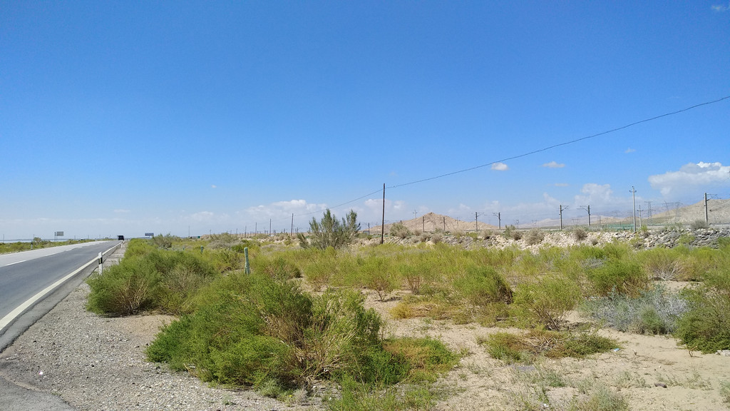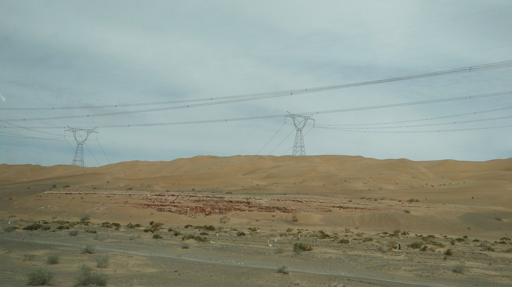 继续赶路,一路向西,沙漠地貌开始呈现,黄沙变多,绿化更少,眼前就是公路、铁路、电线杆,以及跟我们一样赶路的汽车、卡车,这时候更能体会什么是荒无人烟。