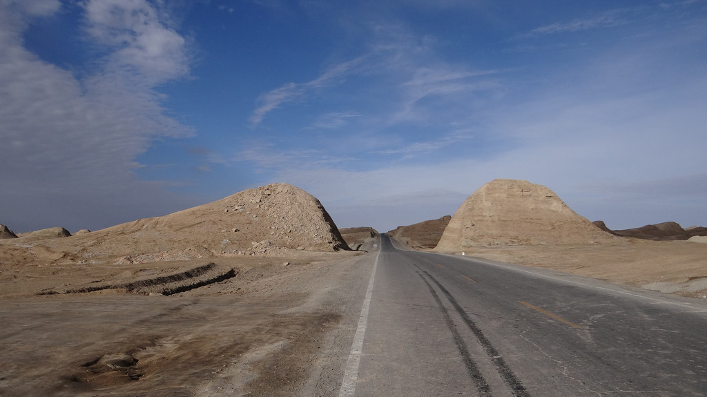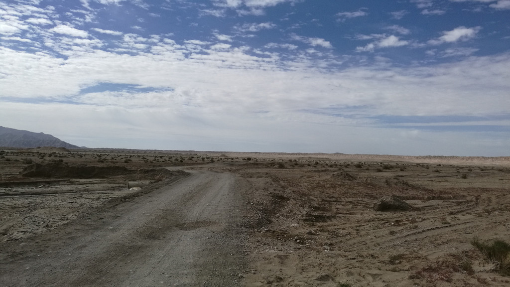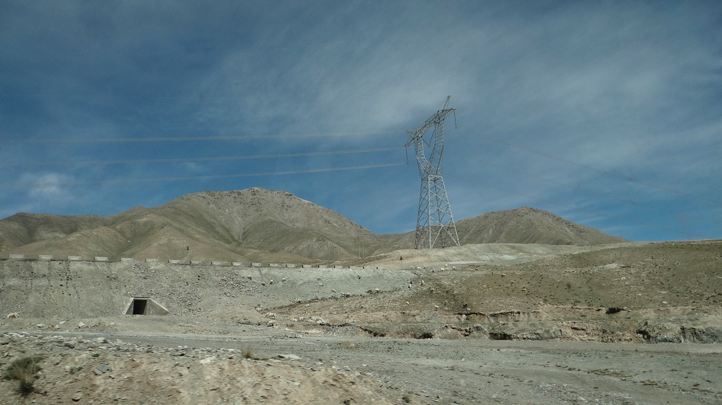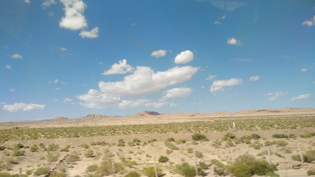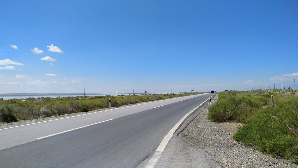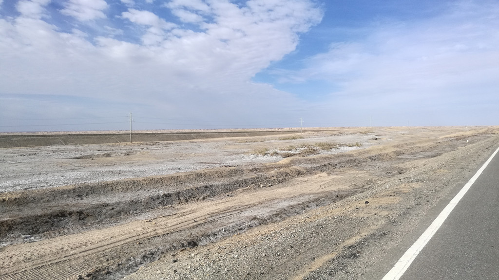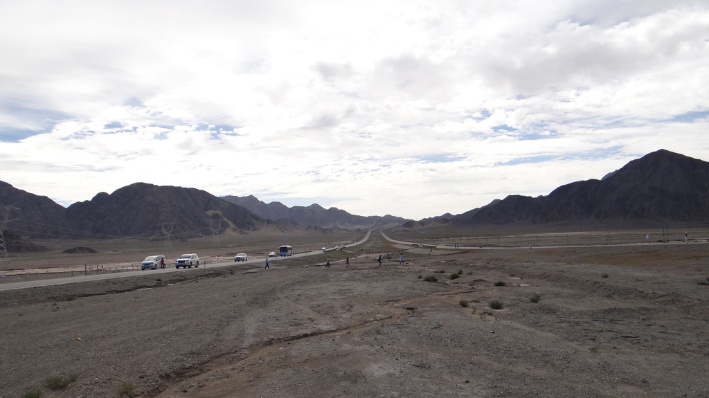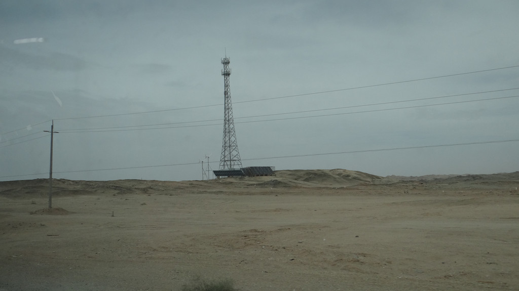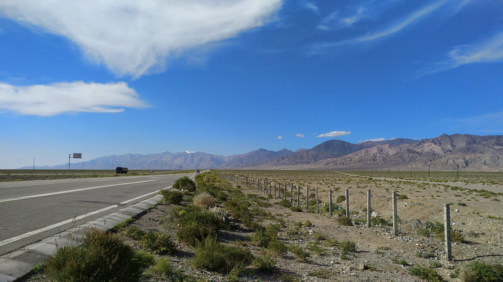 继续赶路,一路向西,沙漠地貌开始呈现,黄沙变多,绿化更少,眼前就是公路、铁路、电线杆,以及跟我们一样赶路的汽车、卡车,这时候更能体会什么是荒无人烟。