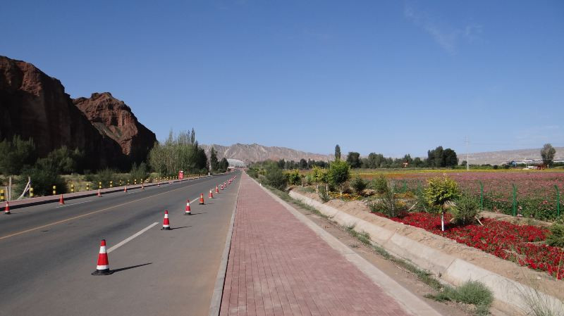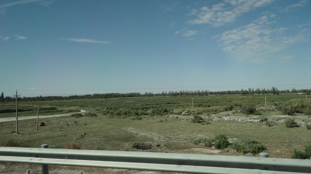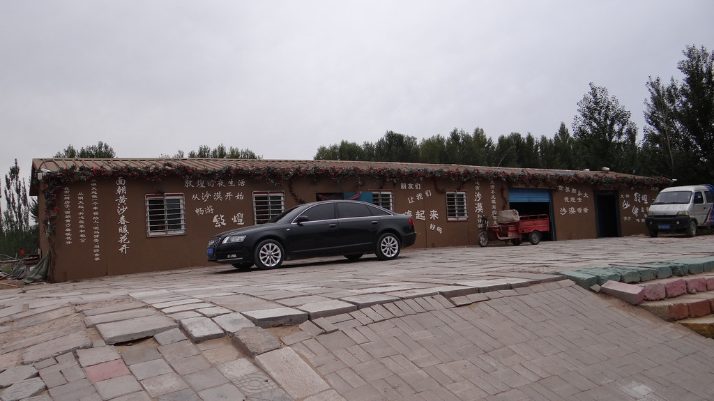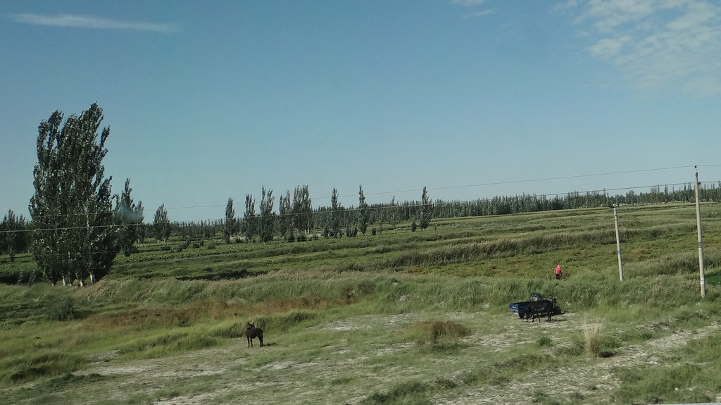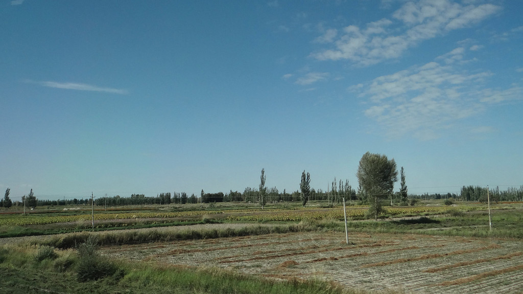 进入瓜州境内,开始出现少量黑土地,树木渐渐高大,田间有人劳作。不像敦煌,满眼的黄沙,零星的梭梭草,散落的房屋,稀少的人烟。