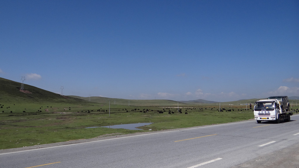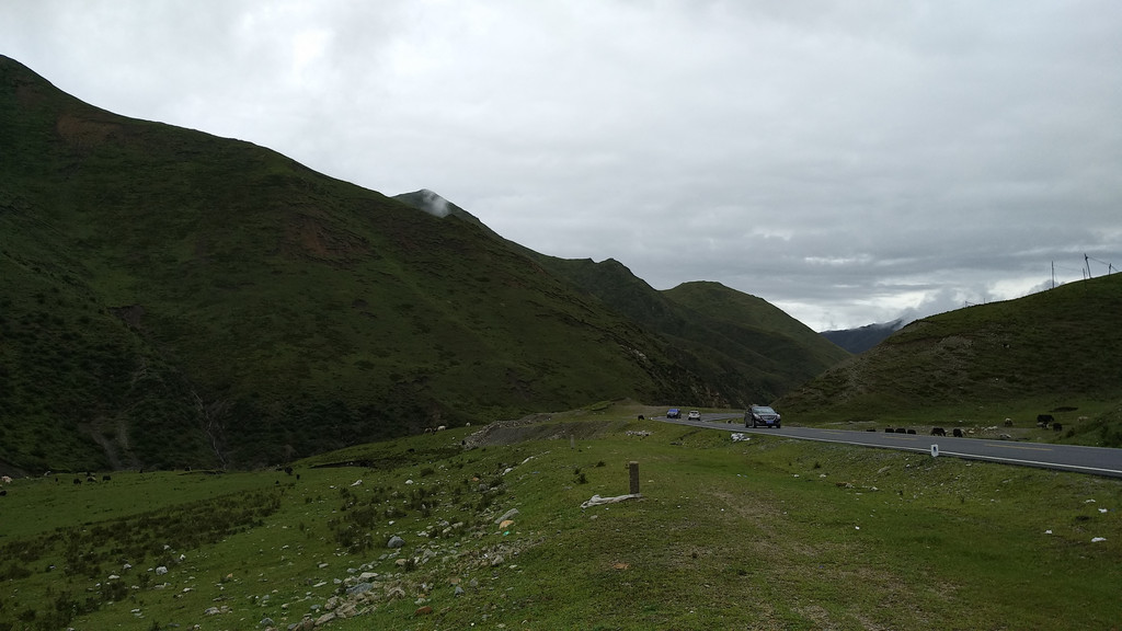 随着海拔下降,高原反应逐渐消失。新的考验又来了,路况变得时好时坏,搓板路、按摩座开始登场。往当金山方向有一段土路,路况极差,颠簸非常厉害,每隔一段时间,大家就一起有节奏地上下左右起伏晃动。这一个小时的行程,哪能称之为“路”,就是司机为缩短到高速公路的距离,硬开出来的“道”,对车辆伤害很大,省这点油不划算啊,难道车子不是自己的?