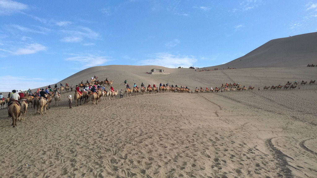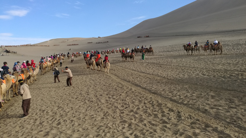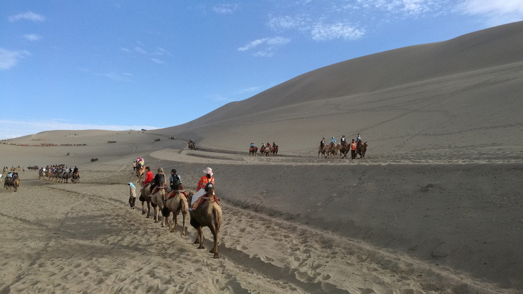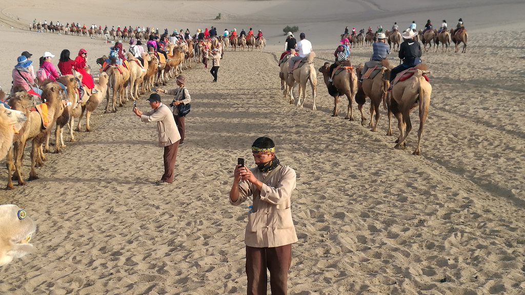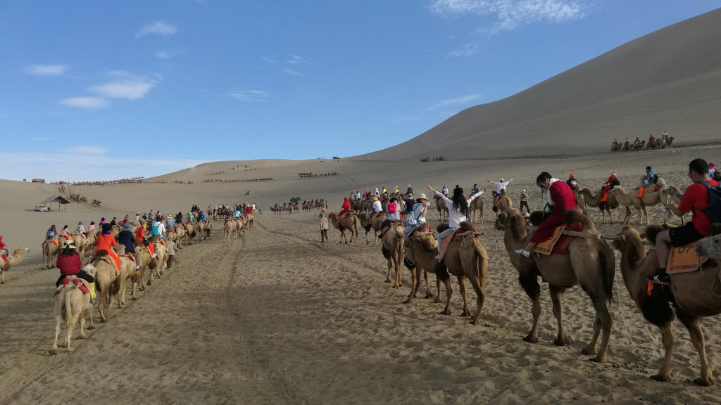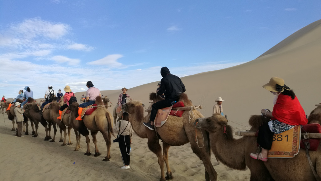 大部分人的玩法是先去骑骆驼,再去爬山看月牙泉、等日落。