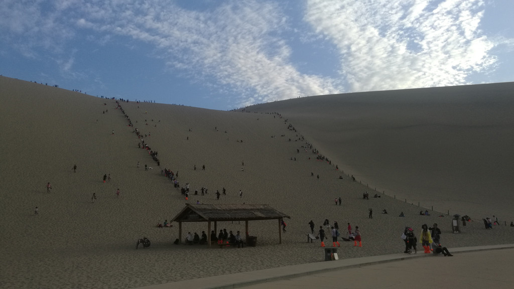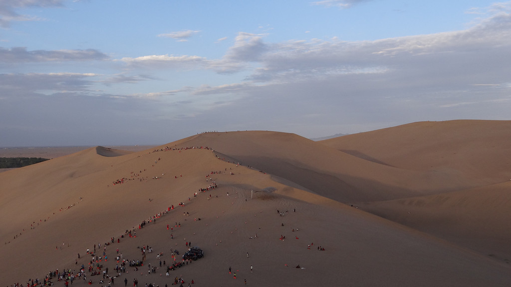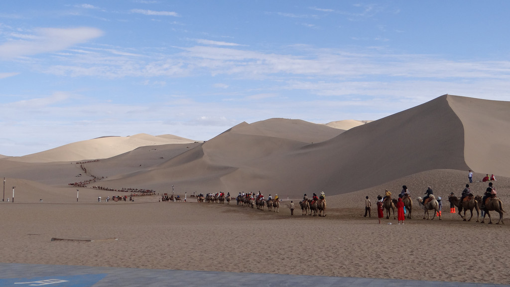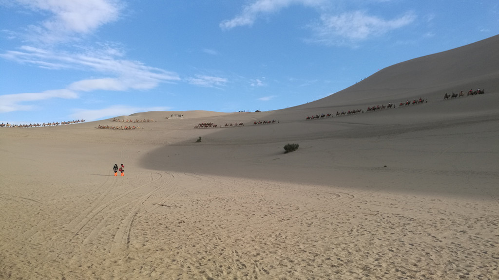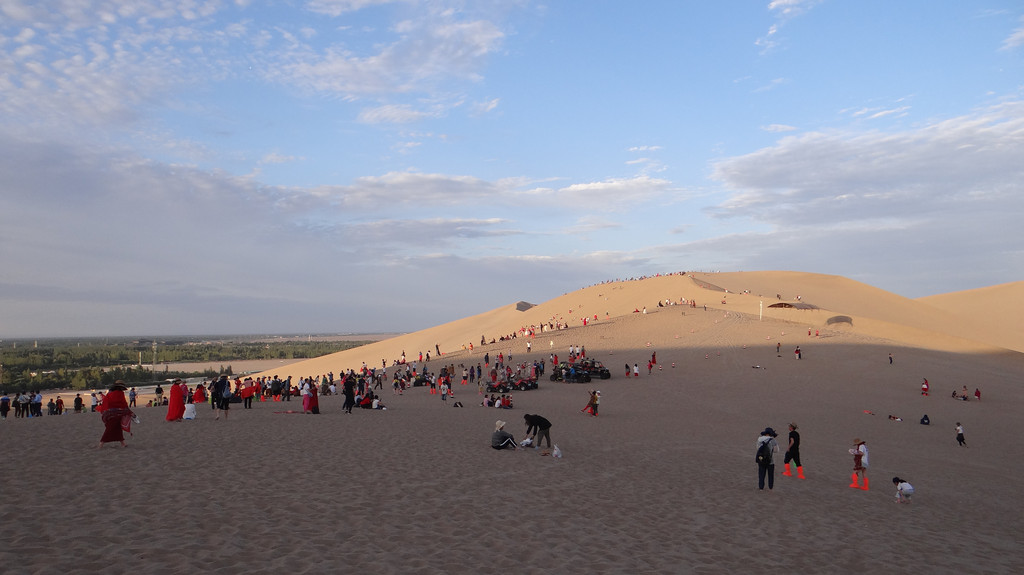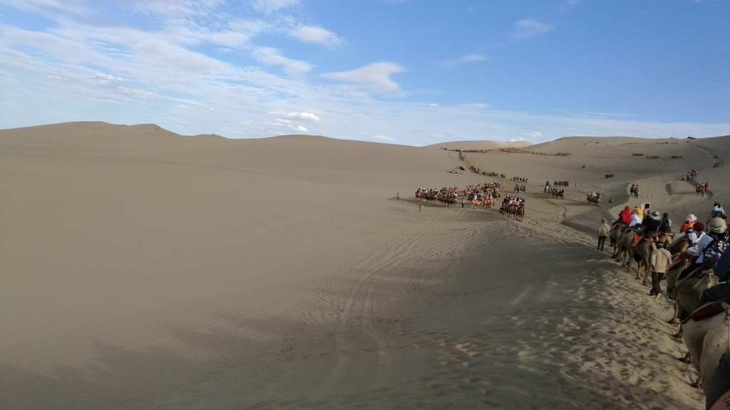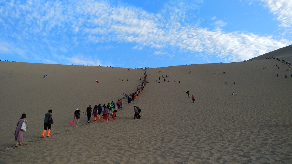 大部分人的玩法是先去骑骆驼,再去爬山看月牙泉、等日落。
