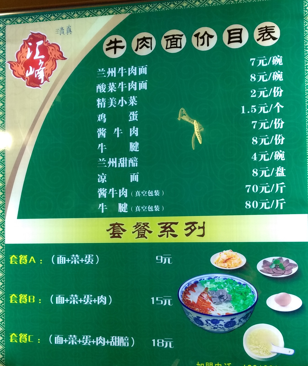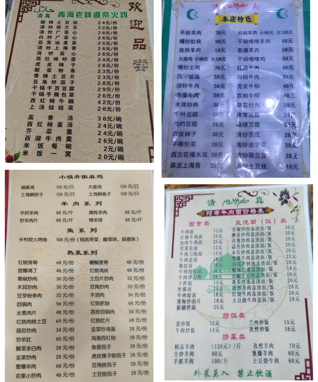 这是在旅游途中,一到兰州、西宁市区,价格、口味、环境很快就有所改善。