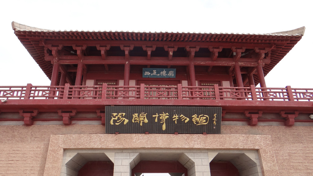 阳关位于甘肃省酒泉敦煌市西南。脍炙人口的“劝君更饮一杯酒,西出阳关无故人”、“羌笛何须怨杨柳,春风不度玉门关”,让阳关和玉门关大名远扬。这两个关口,一个在南,一个在北,都是丝绸之路敦煌段的军事重地和必经驿站,离开两关以后就进入戈壁大漠。
