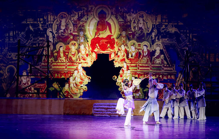 来到敦煌,有一场演出必须要看,这就是王潮歌创作的《又见敦煌》,它从敦煌悠久的历史文化中,选取五个典型场景、六个线索人物,串起故事脉络,将沉睡数千年的东方神韵再现舞台。演出时演员与观众互动,以“穿越”为指导思想,打破时空距离,体验情境交融。