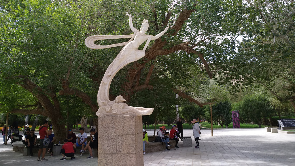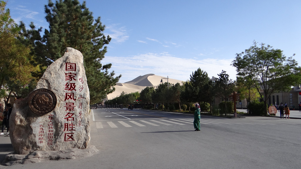 敦煌可以玩的地方很多。时间关系,博物馆没来得及去。沙洲夜市没逛,觉得夜市、步行街、小吃一条街,都是针对外地人的,布局相似,都是历史怀旧风,都是一格一格的店铺,都是义乌货。晚上犒劳一下自己,点的手抓羊肉不那么肥,难道这里的羊不像大柴旦那样吃草?