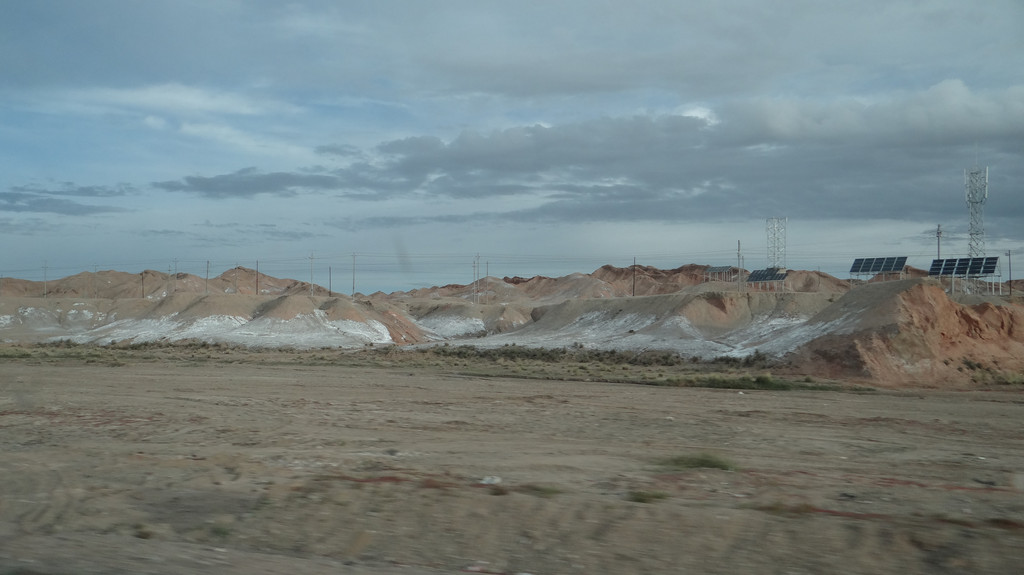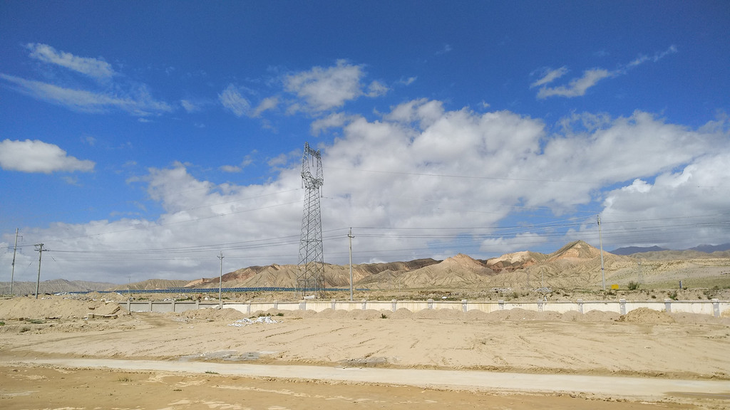 茶卡镇往大柴旦方向,越往西绿化越少,荒漠化开始变严重,人烟也越来越稀少。三个多小时,基本没看到房屋,只有零星的铁路、通信、电力、军事保障用房。