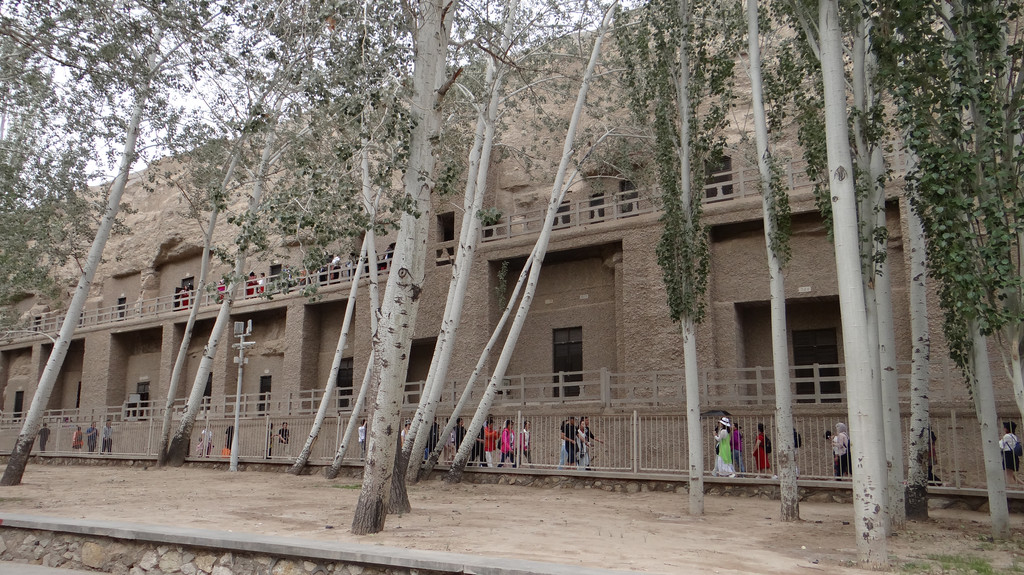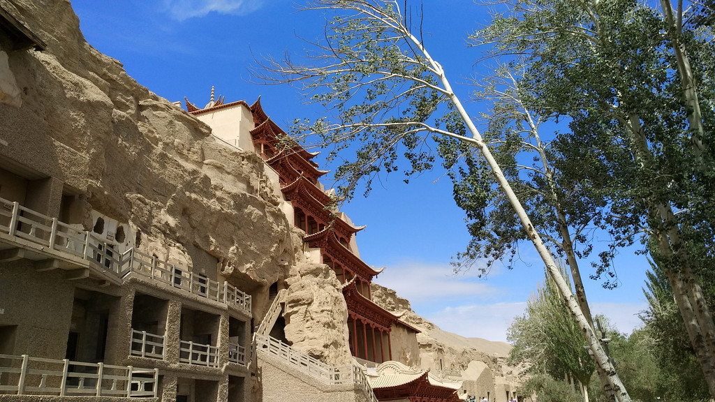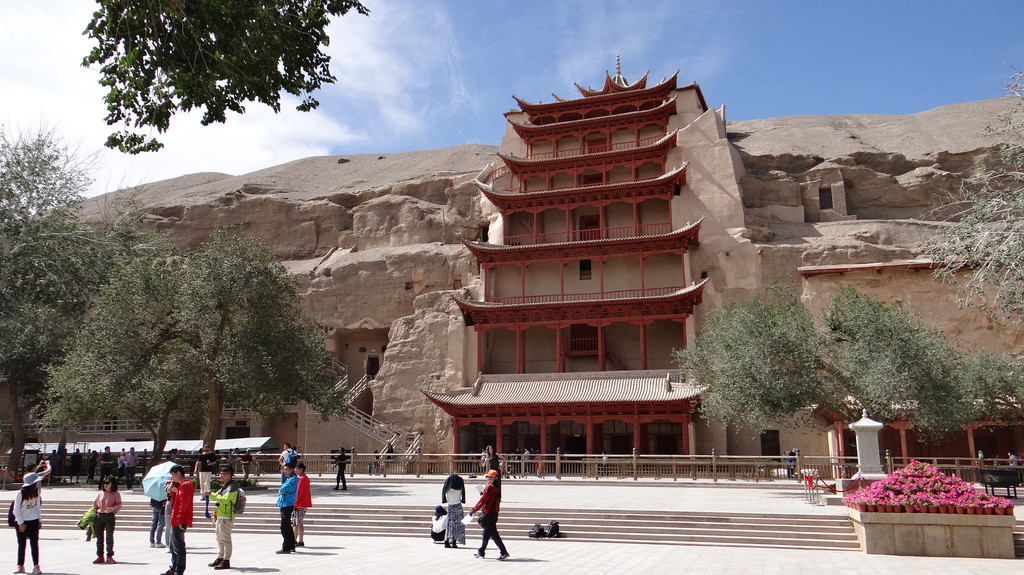 莫高窟俗称千佛洞,以精美的壁画和塑像闻名于世,被列入世界遗产名录。洞窟始凿于前秦建元二年(公元366年),历经北凉、北魏、西魏、北周、隋、唐、五代、宋、西夏、元10个朝代长达1000年的增修,各种洞窟密布崖面。此后,由于丝绸之路渐渐沉寂,敦煌失去重要地位,开凿也趋于停止。现存洞窟735个,壁画4.5万平方米。