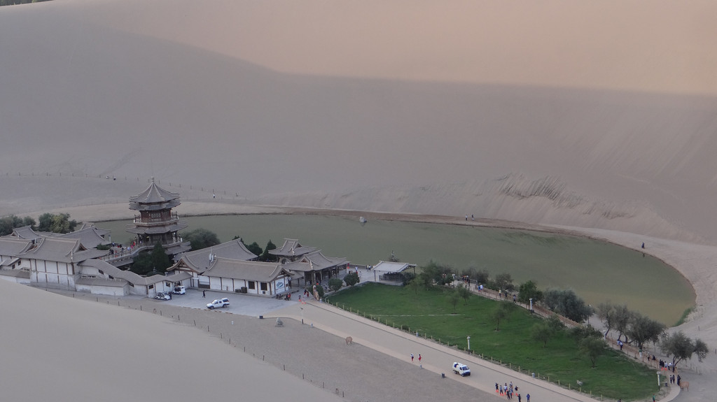 月牙泉没有想象中的那么美,没有宣传中的那种震撼,可能是天色暗了,看不清楚的原因。