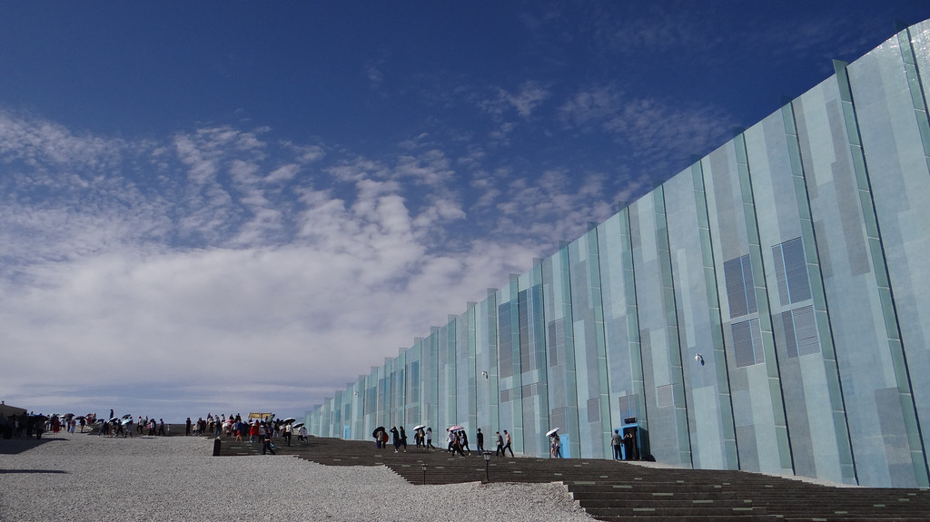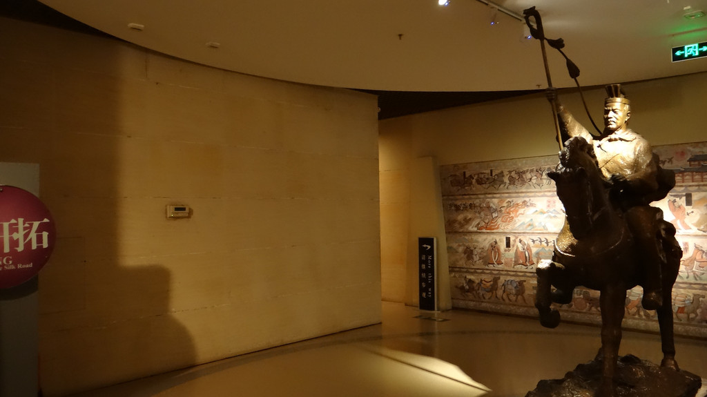 兰州有两个客运火车站,一个是高铁站,一个是普通列车站,这一点与西宁不一样。我这次经过的是高铁站,广场前没有兰州站的铜奔马雕塑。兰州中川机场广场前也有铜奔马雕塑,因为天黑也没看到。但不必为我感到遗憾,因为马上就要去甘肃省博物馆,那里是正宗的文物,想看多久就看多久。