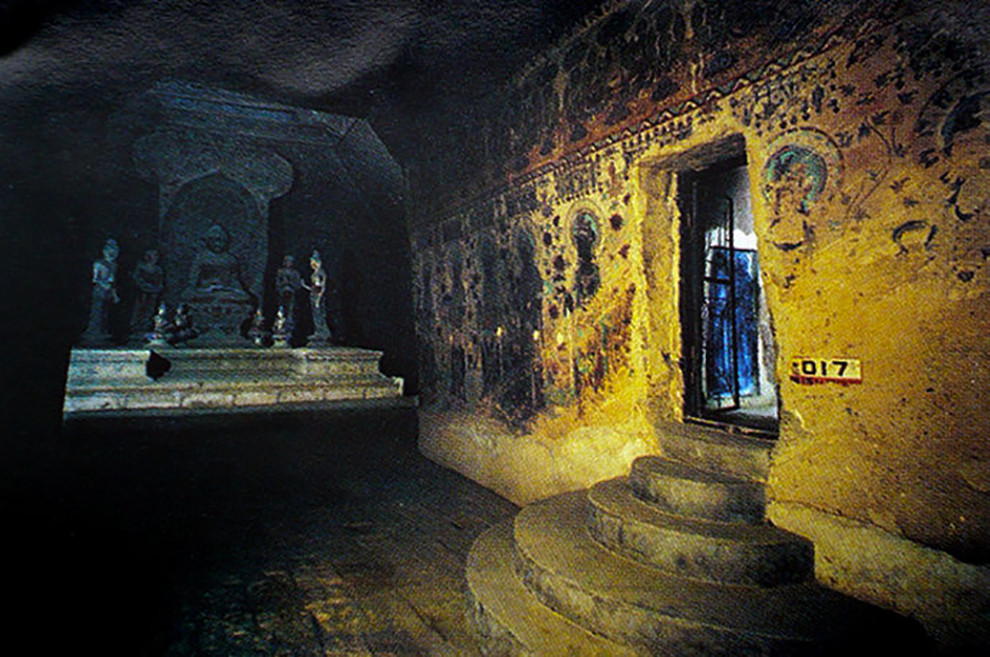 (3)第17号,藏经洞,和16号窟连在一起。洞窟内藏有4世纪至14世纪的历代文物6万多件,这是20世纪初中国考古学上的一次重大发现,震惊了世界,由此发展出著名的敦煌学。最先发现藏经洞的是道士王圆箓,他后来把一些文物卖给外国探险家,据说原因有三:一是在长达7年的时间里,他多次求助官方,但无人过问,致使他灰心;二是为了完成他的宏愿,清扫洞窟,修建三层楼,架设木桥需要大量资金;三是他为外国探险家追求事业的精神所感动。……这里不评论。