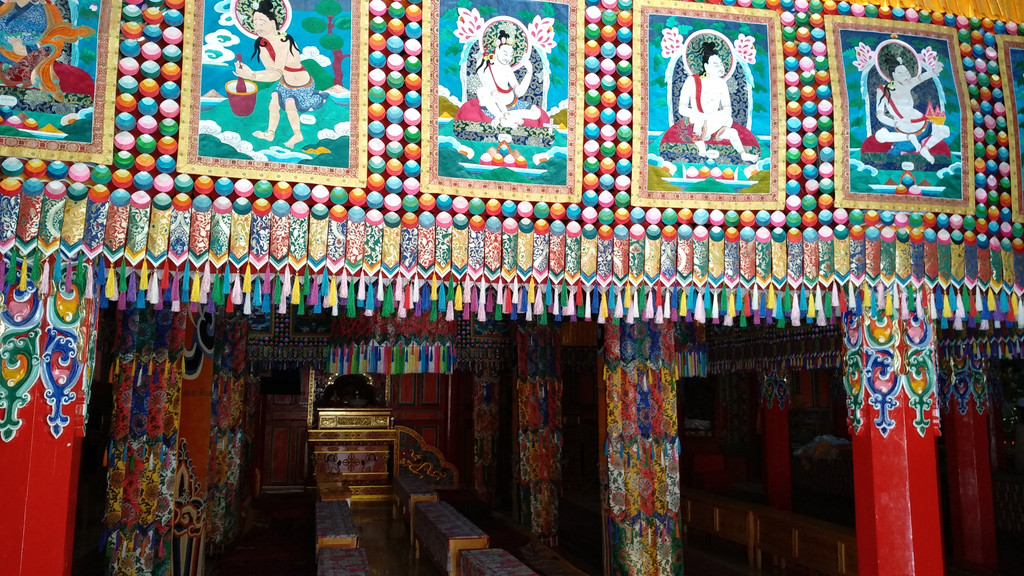 主要看点是“艺术三绝”:酥油花、壁画、堆绣。