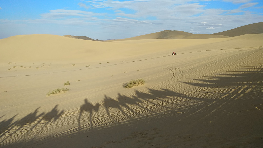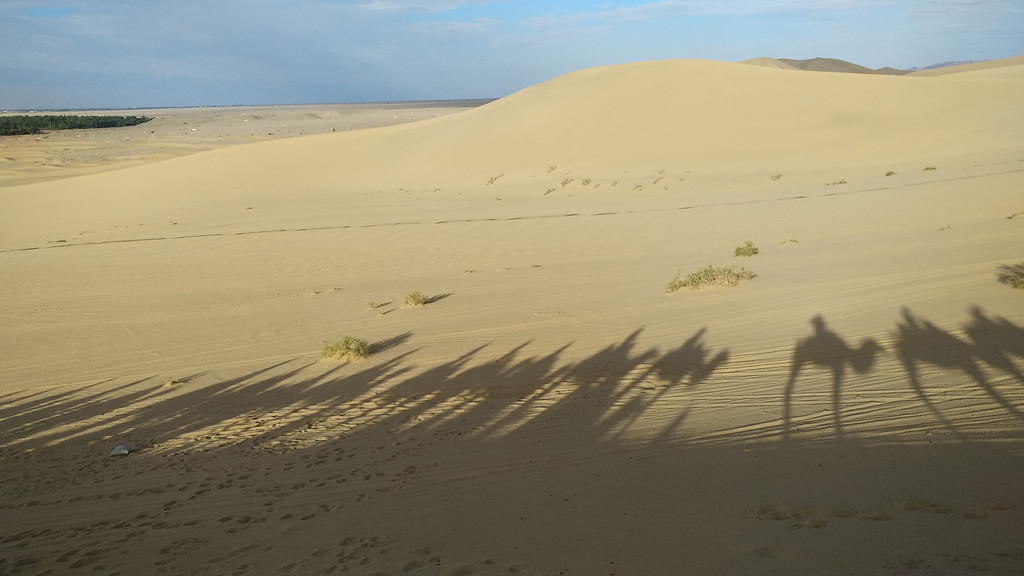 骆驼的前进速度比较慢,上下有点颠簸。最好戴帽子、墨镜、口罩,既可遮阳防尘又能挡住异味。