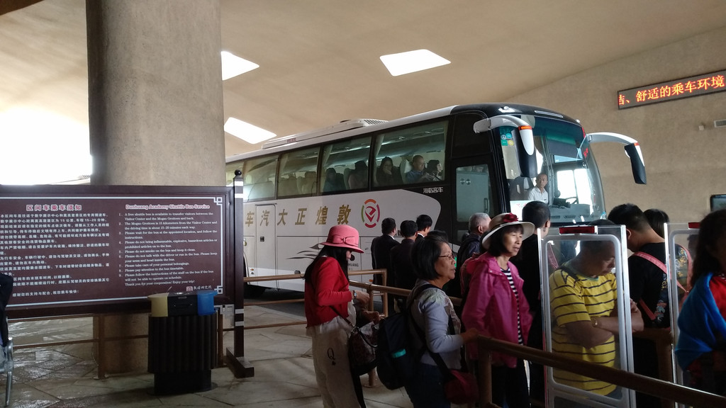 8年前我来过,现在比以前多了观光车,来回20元,经专用车道,绕过大半个县城后开到游客中心。单程4公里,开车10分钟,步行也不是不可以,要40分钟。还是掏钱吧,善哉善哉,理解人家的用心。