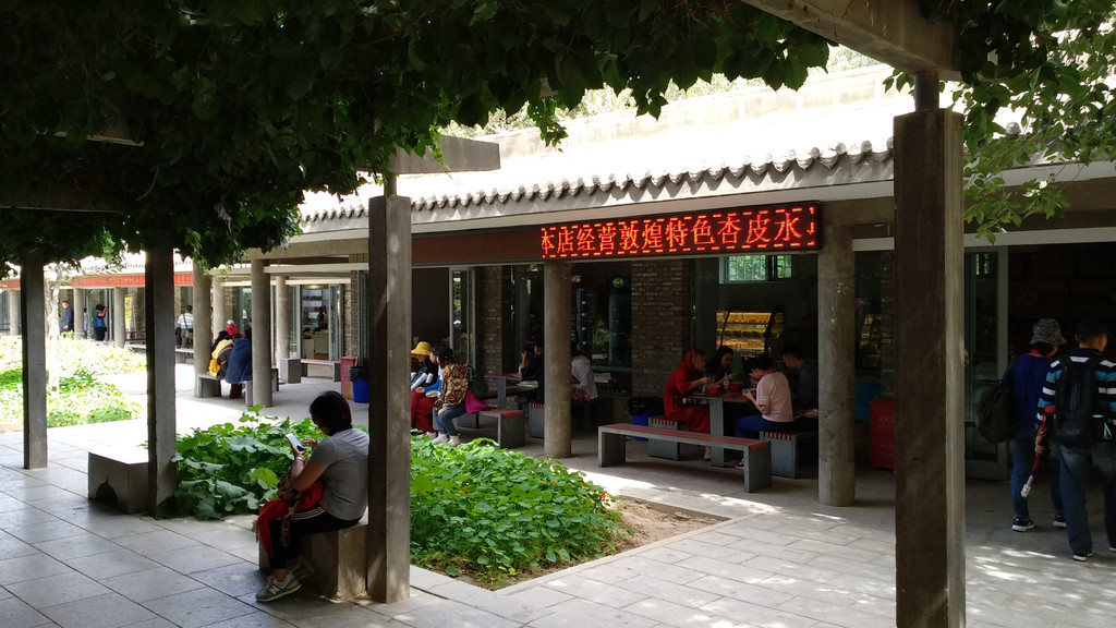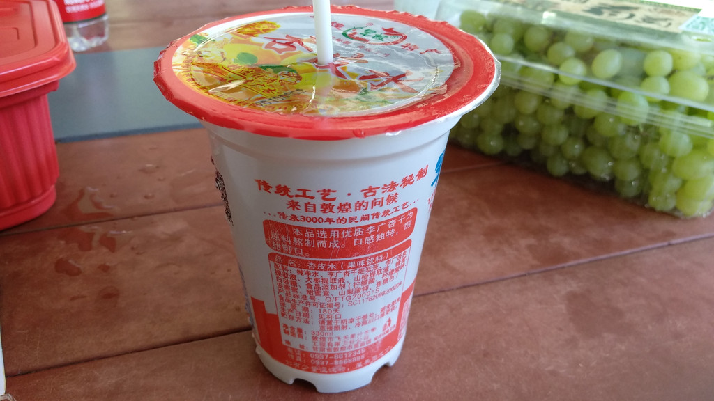 不知不觉,已是下午2点。来到景区内的服务点转了转,买了自热方便米饭(28元)、杏皮水(6元,330ml)、无核白葡萄(28元)。