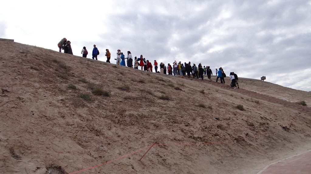 有一个团友坚持要到关城景区,我们跟他约好,不能在这里浪费太多时间,一个半小时就出来。等候过程中,与景区摊贩聊天,得知每年只做半年生意(4—10月,10月份之后变冷),摊位费平均每月2000元(与位置、经营品种有关),但游客少,生意淡。看看周边环境,尘土飞扬,房屋破旧,哪像一个5A级景区。