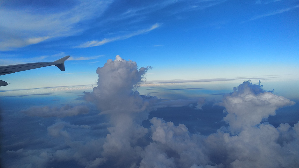 刚才还是阴天,渐渐转为多云,现在完全是晴天了。