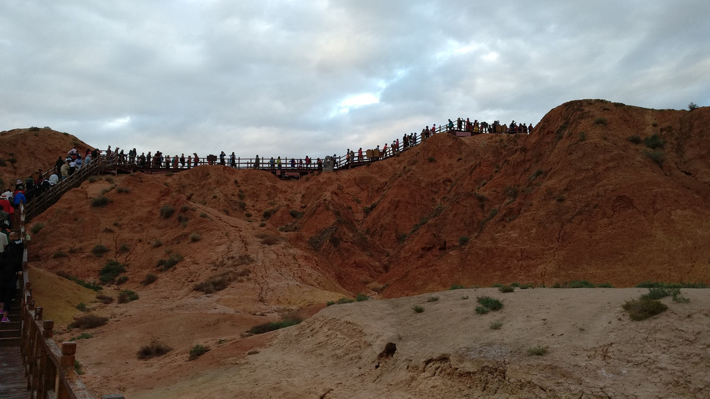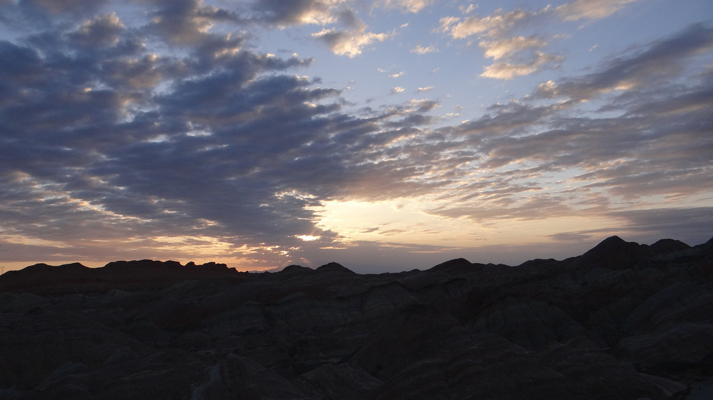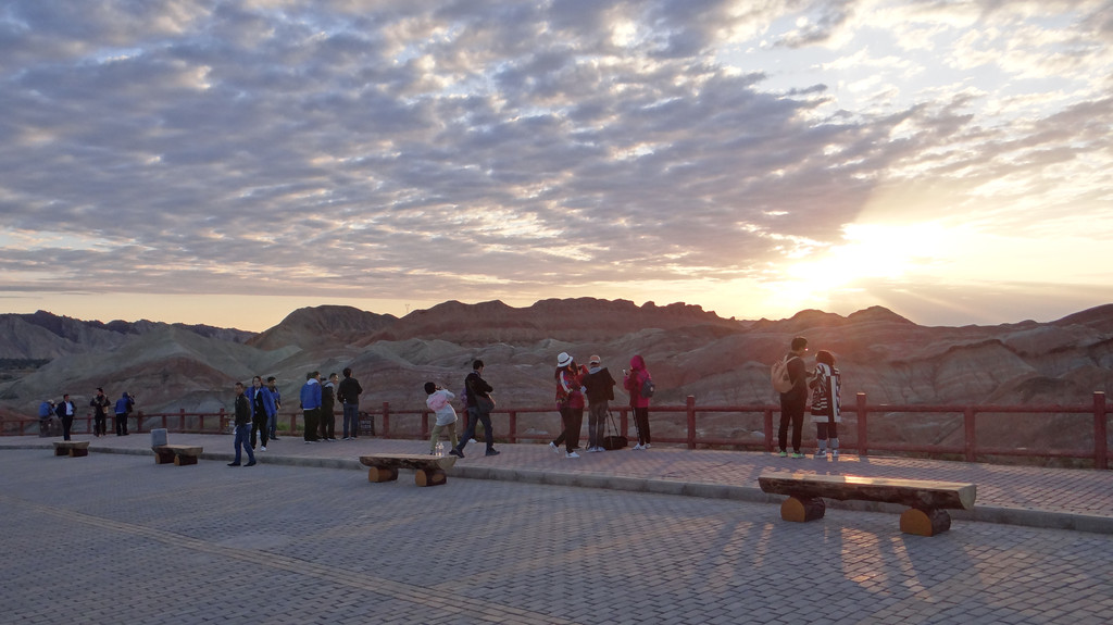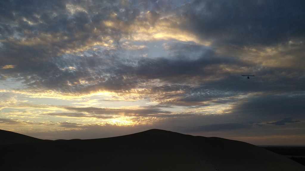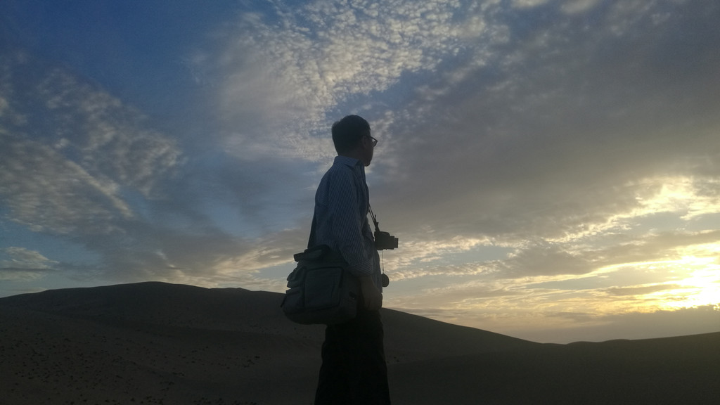云层太厚,估计今天看不到“大漠孤烟直、长河落日圆”的壮观了,天色渐暗,散了吧。
