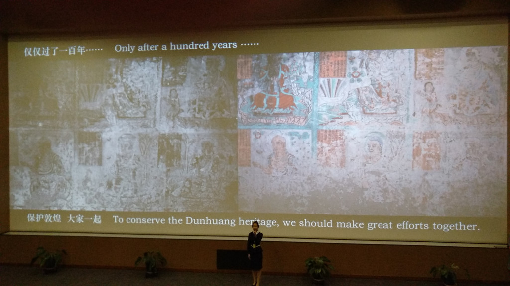 《千年莫高》时长20分钟,介绍丝绸之路中敦煌的作用。《梦幻佛宫》在球幕影院放映,时长20分钟,介绍不同时代7个经典洞窟内的壁画和塑像。影像都很精美,现场感很强,可惜每张门票只能看一次。