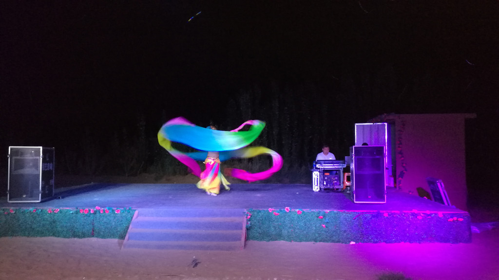 晚饭质量很差,说是火锅,没什么值钱的菜,午餐肉、火腿肠、豆腐、蔬菜、廉价啤酒。有歌舞表演,就两个人为主,男的唱歌,女的表演,插科打诨,营造气氛。最后篝火晚会,围着一圈蹦跶几下乐一乐。后面的帐篷露营,我没参加,觉得卫生条件有限,再说已经是九月份,估计夜里很冷。