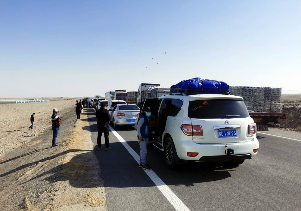 墨玉至和田的高速公路,全程26.8公里,正常需要半个小时。而我们在这条路上堵了8个多小时!午夜时分,和田方面才给出明确意见:进和田的要做核酸检测,不进和田的可以放行,但要由警车押送出和田!在和田的一个检查站,又折腾了几个小时,我们才被警车押送出和田。