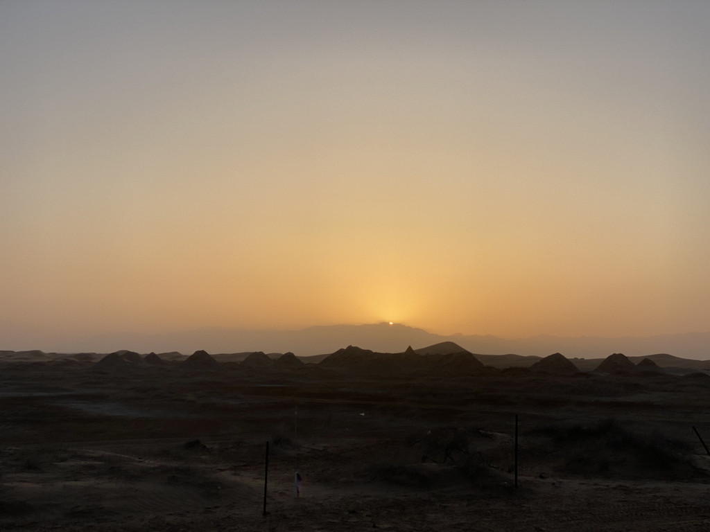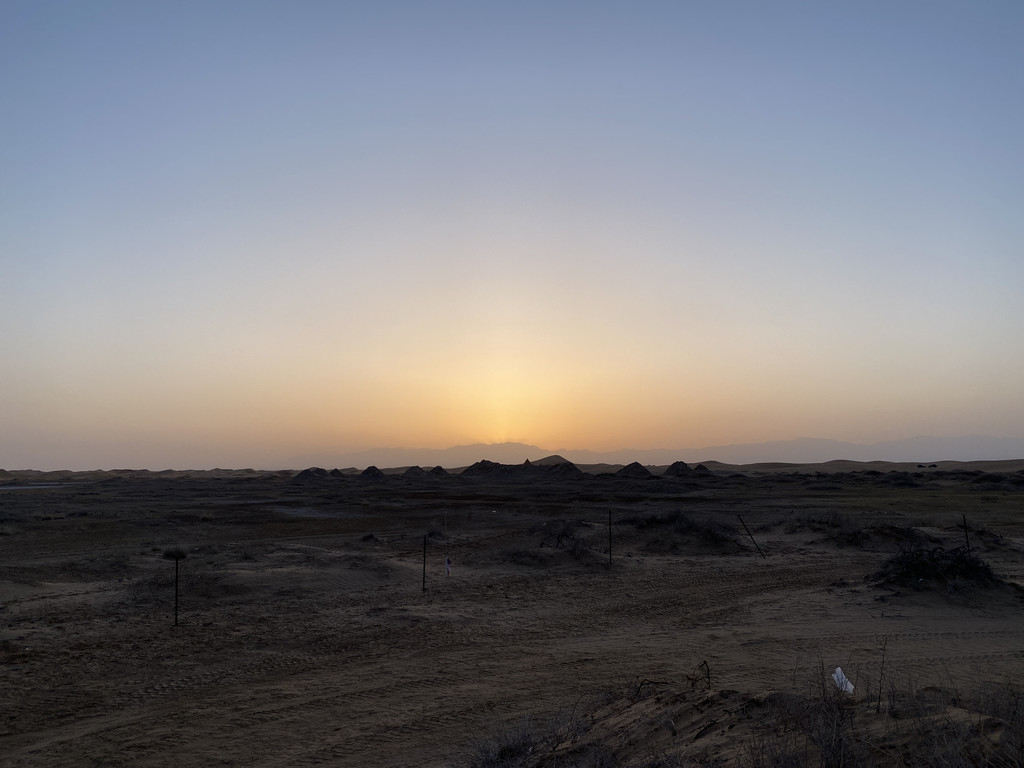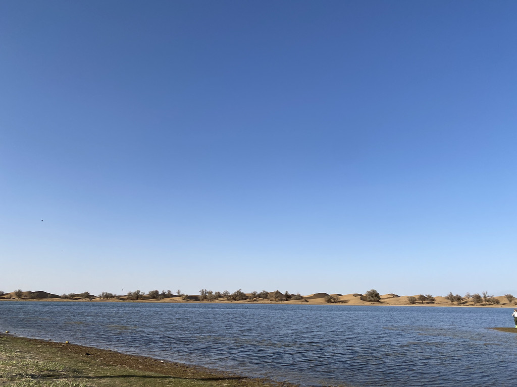 下午6点左右走到了天鹅湖,沙漠的一汪清泉惊艳了众人。有水的地方,就有了说不出的生气。据向导介绍,每年3~4月和9~10月会有天鹅群在此驻足小憩,这里是天鹅漫长旅途中的一个驿站。我静静地坐在湖边的沙地上,脑补着天鹅沐浴嬉闹、昂首弄姿的画面,仿佛见到了即使小憩也高傲、优雅地伸展着脖子的天鹅姐妹。