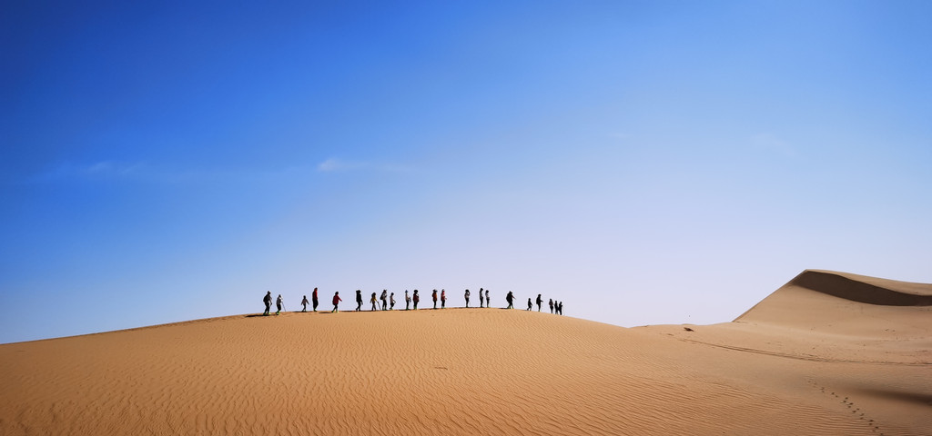 这条徒步线路从沙漠边缘的一个中转站出发,串起大漠里的五颗明珠——天鹅湖、乌兰湖、苏海图湖、太阳湖、月亮湖,载着它的过客,在日出日落里,在漫天飞扬的黄沙与碧蓝如洗的天境变幻里,来来往往地度着缓慢流动的年年月月。