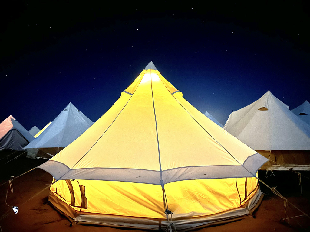 晚上7点40抵达“外星球”营地,美味的团餐、热烈的篝火晚会、一场流光溢彩的烟火,然后进入一夜的休整。夜,死静死静的;月,明澈如水;星,如深幽夜幕中的碎钻,撒了一地,遥不可及,但是又第一次觉得北斗七星触手可及。