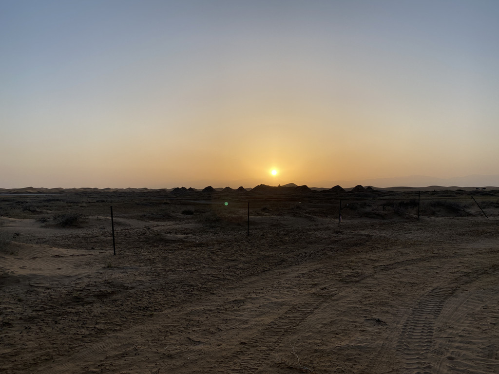 运气就是这么好,一觉醒来正好赶上日出,赶上太阳越过沙丘的一瞬间,呼之欲出、喷薄而出、扑面而来!