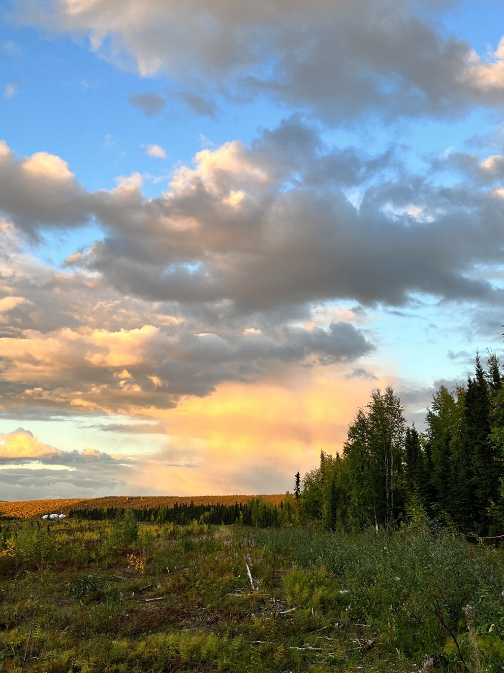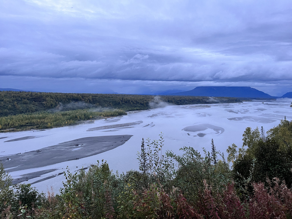D2 从 Anchorage安格雷奇取车购物,下午三点多才出发,到达戴纳利国家公园已经傍晚6点多,一路小雨,9月是阿拉斯加的秋季,越往北路边的植被开始由绿变黄再变橙,还夹杂着红色,一路没有停车,晚上在戴纳利州立公园的停车场过夜,停车场离公路不远,好在夜里没有车辆经过,夜显得格外安静;