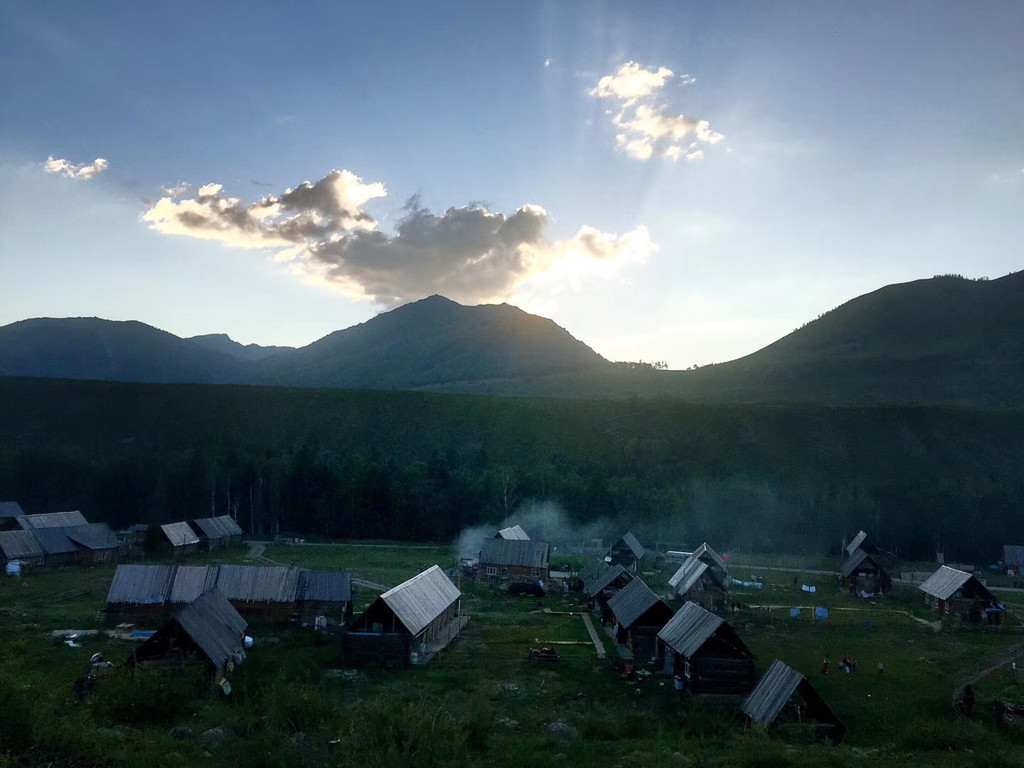 禾木村,这是一个被《中国国家地理杂志》评为中国最美乡村之一的小山村。这个小桥流水,炊烟袅袅的古朴山村是图瓦人聚居的地方,保留着原始风貌的禾木村,是隐藏着的世外桃源。山谷中一排排小木屋点缀在白桦林间,与远处的山峰、森林、蓝天、白云构成了一幅绝美的景致。登上哈登平台,整个禾木的全貌,尽收眼底。
