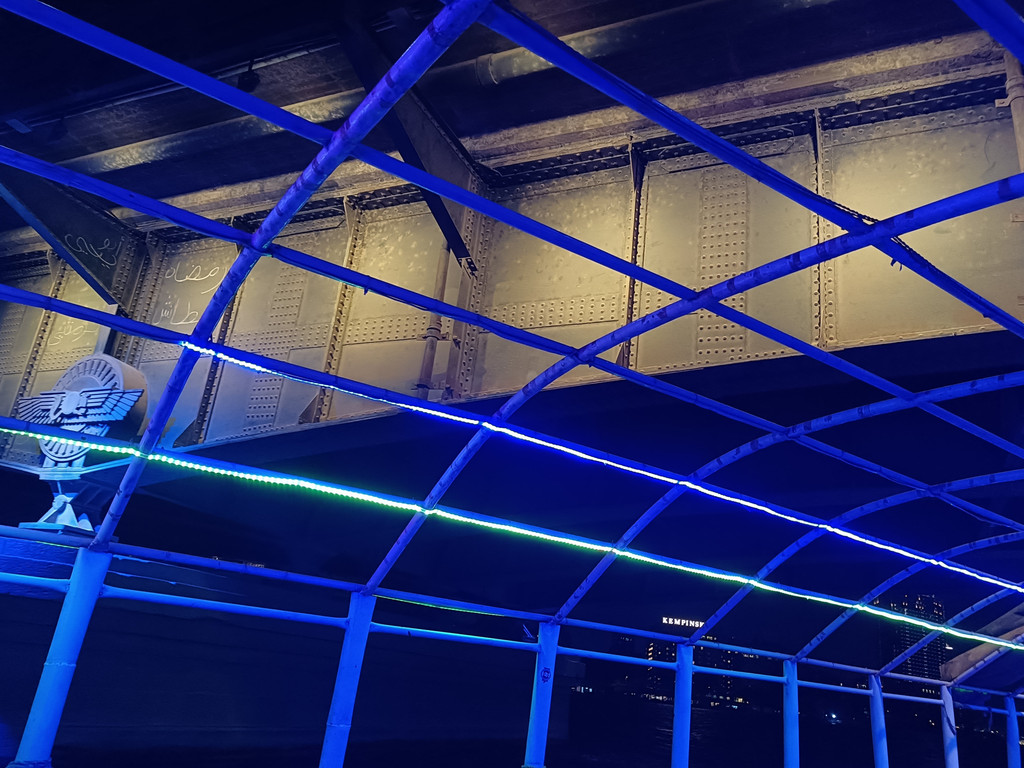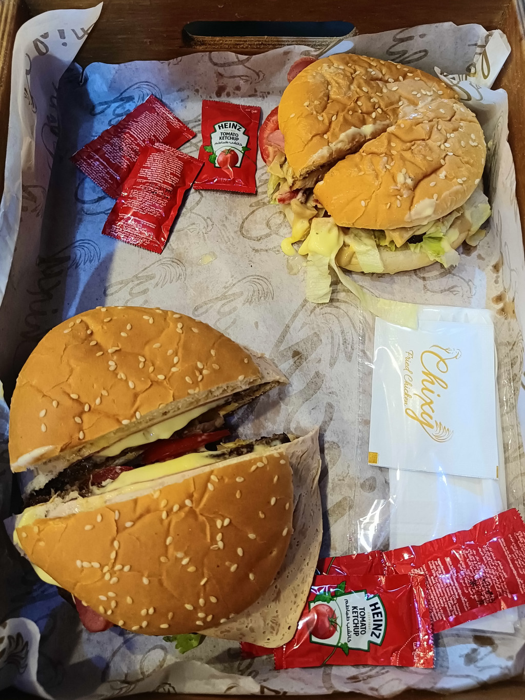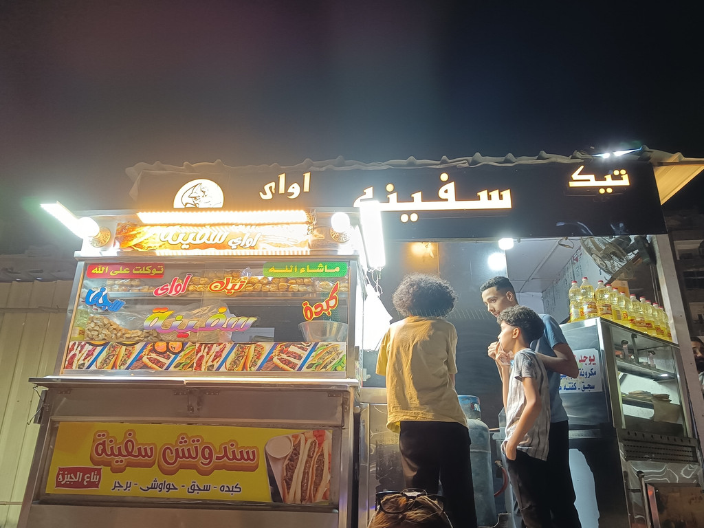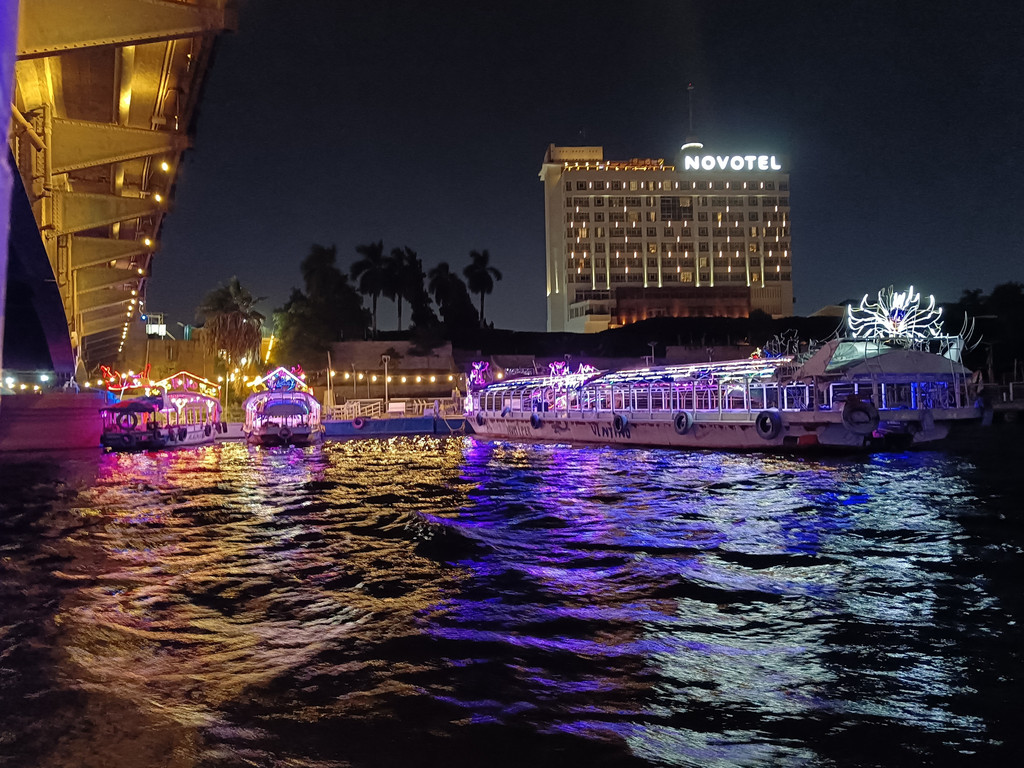 ~入住坟景房后换个衣服就出去浪,中午吃了安全的肯德基,在金字塔售票处旁搭小巴(20埃磅每人),到最近的地铁站,经历了第二次人生成长。到靠近尼罗河的站点,坐船游船河(本来想坐含晚餐有旋转舞的船,无奈老板报价太高,25美金每人,遂选了个低配的),1200埃磅两人。尼罗河两岸的高档酒店的夜景都不错。坐地铁回来,本来想在小巴站吃饭,没有找到合适的,同伴喝了真有料的芒果汁,我买了熟过的无花果,还只能买1公斤,少了不卖。搭小巴回吉萨,两人14埃磅,还有点距离。同伴提到留硬币的事,要跟同车的帅哥换硬币,结果人家送了她一个。跟着社牛到处都有奇遇。路边摊吃个三明治,她吃的鸡肉,我看着图片点的,也不错(有淡淡的膻味)。打车回驻地,结束一天行程。