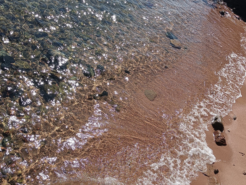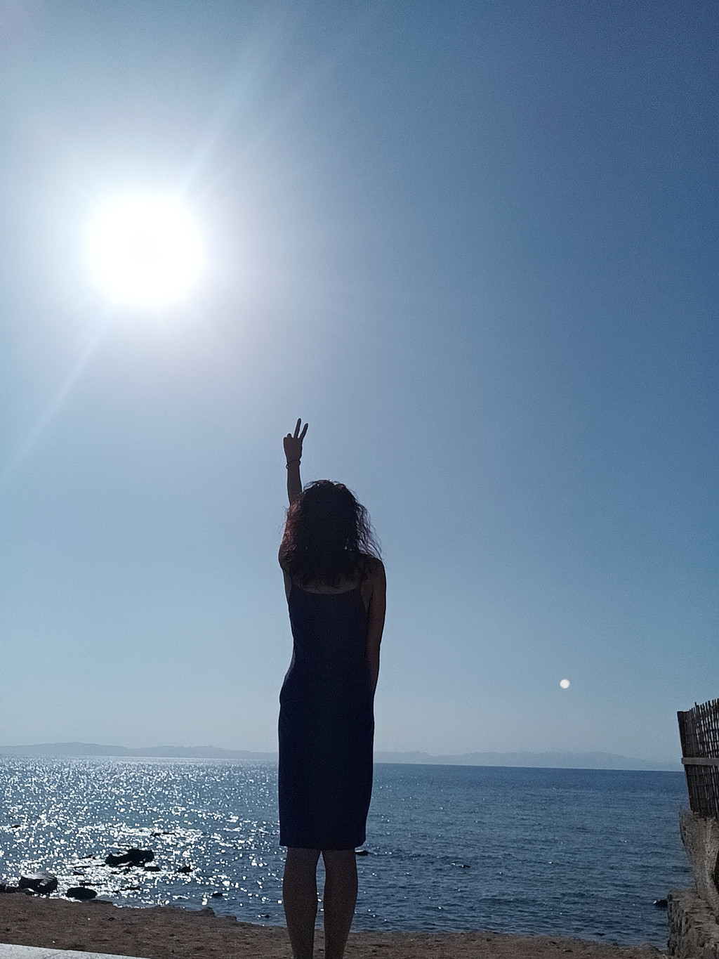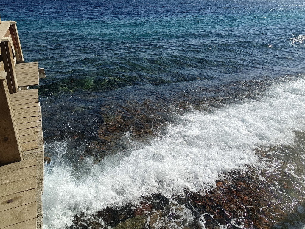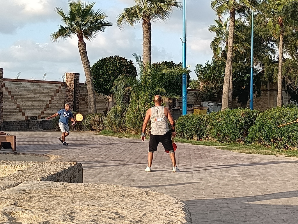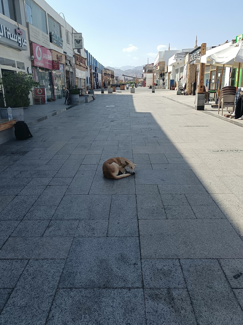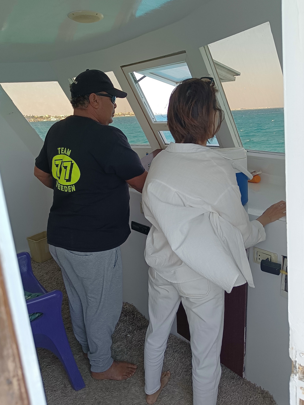 D22(11.5)~这里夜里睡觉还挺冷,盖着被子,并用羽绒服压脚。早5点被生物钟叫醒,去大厅烧上水,先去对面的海滩,有铁门拦着,跟守门的打招呼就让我进去。经过我们昨天吃汉堡的地方,同伴说我们从这离开他也不知道。回到大厅开始喝茶,在那盯夜的大哥(本来叫他大爷,后来发现可能是同龄人)。他问我做什么工作?我说美术老师,并把油画给他看,问我结婚了没有?我答“爱自由!”最高兴是他猜我20多岁,我只能说30了。还给我介绍了埃及的景点,我夸埃及很美,说准备带我妈来住一段时间。他说话口音比较重,无论是英文还是阿拉伯语,翻译软件都不认,我也只分辨出比较简单的。就这样尬聊了将近一个小时,中间猫咪还主动来给我做按摩,我就回屋拿了牛肉火腿片给猫。同伴起床后下来问追海豚的事,他送了我一块小石头,感动!