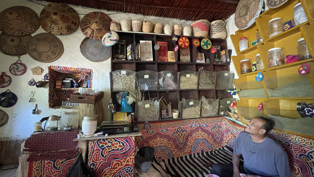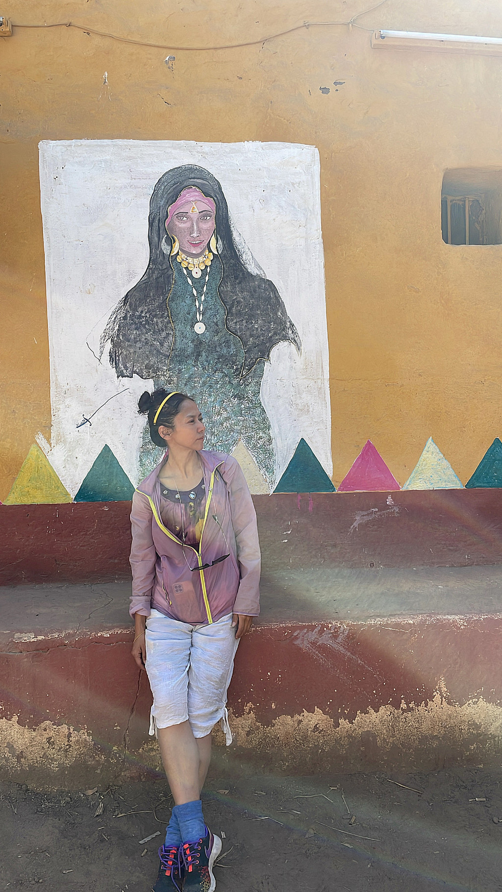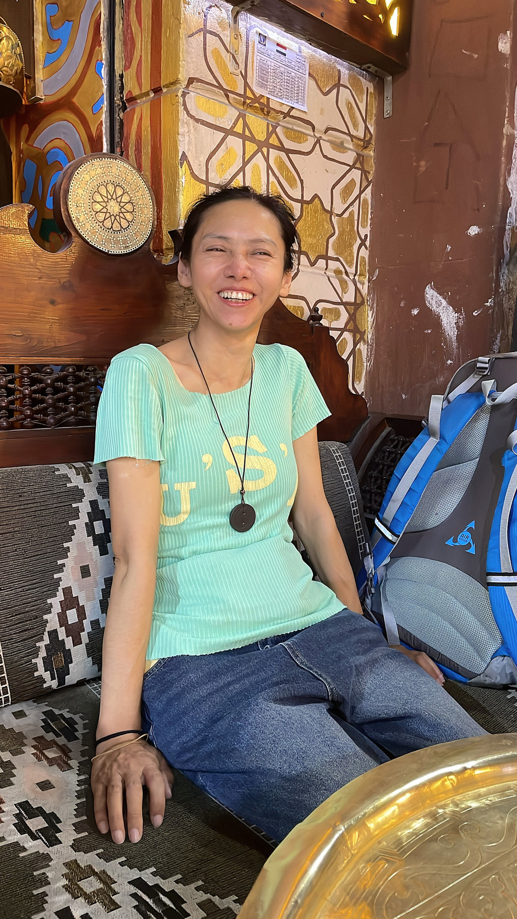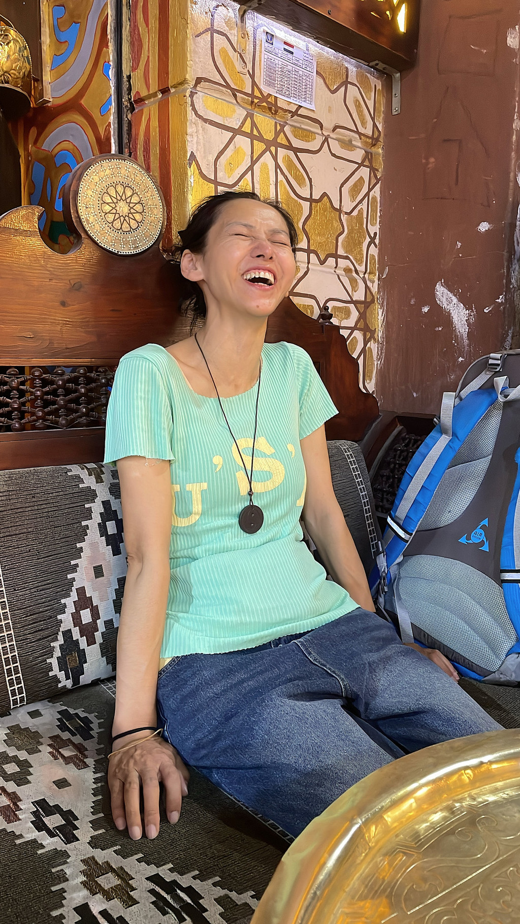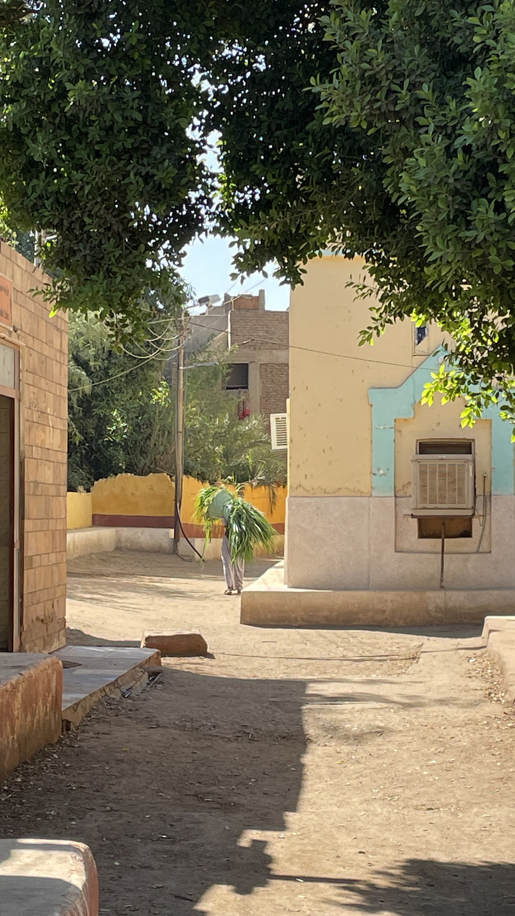 D28(11.11)~收拾好行李放楼下寄存,阿斯旺最后一天。出门坐突突车去尼罗河坐船,开价200,还价40,最终50成交。这次埃及游,我被封为砍价小能手,确实佩服群里花三四千美金的,只是我实在能力有限。埃及人均工资只有两三千埃磅,(官方汇率6.8),我两三千人民币,欧美人士两三千美元欧元,差距就是这么显著。也不拦着他们享受生活,逢人打招呼,求合影,没事就弄杯茶或者咖啡(埃及咖啡难喝,同伴亲身经历),像上次开小巴的司机,路边现煮茶,乘客陪着等。来到尼罗河边,有个人主动搭讪,我们说十块钱,他说十美元,我说no镑,他说英镑,所以管他叫大聪明。公交船10磅一位,男的一侧,女的另一侧。来到大象岛,是努比亚人聚居地,十分安静,有很多欧美旅客住在岛上。房子刷成多巴胺色,偶有几何型装饰,我也换了最后一个造型。面膜、艾灸贴、中国茶、陈皮、清凉油都即将用完,是该离开的时候。可还没离开,已经开始想念,问同伴是否回忆每天路上小朋友问“Hello”,回国后是否需要我每天视频问她。