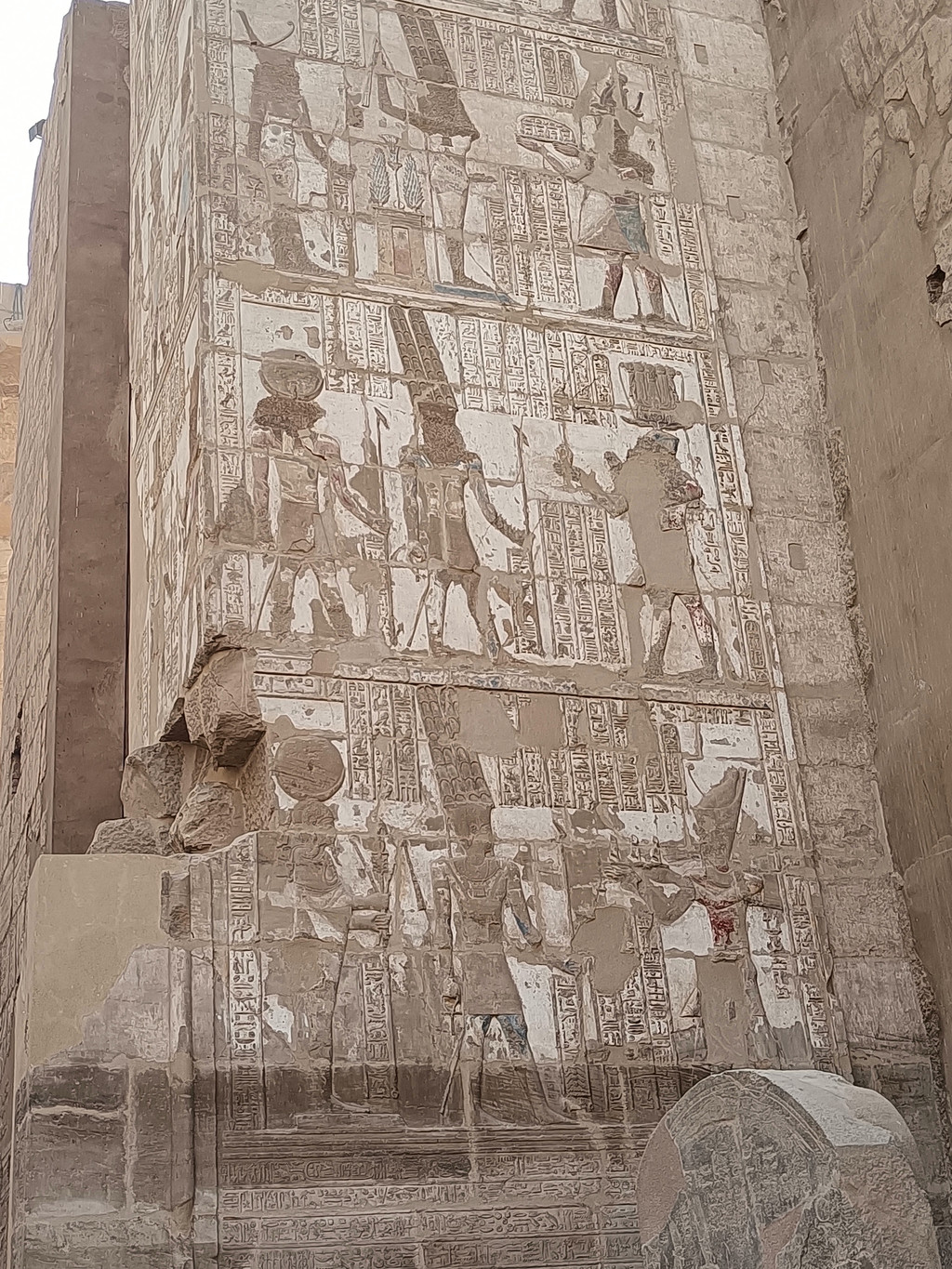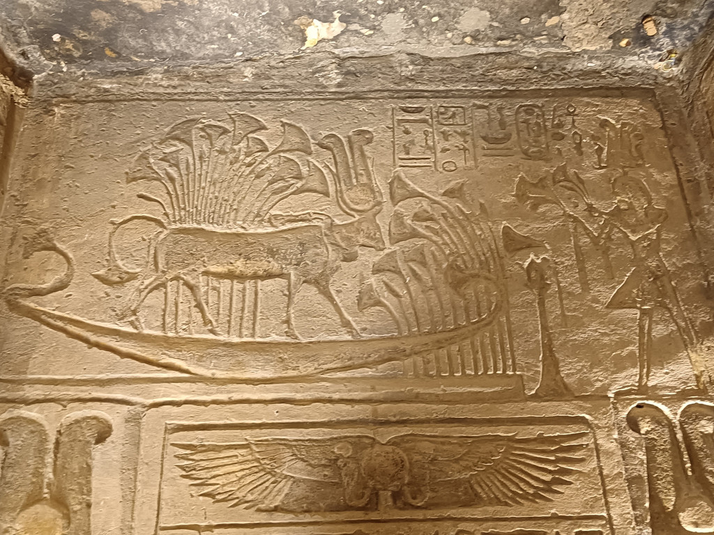 D25-26(11.8-9)~帆船船长一通忙乎,方向稳定后,抽起烟来,分享给同伴,俩人聊得起劲,还给我们三人泡茶。图1这种煤气罐还带灶。吹着微风,我先后唱起了《洪湖水》《东方之珠》《乌苏里船歌》…估计都给大家听吐了吧!后来太阳很快就落了下去,晚霞也很美。结束后约着一起去卢克索博物馆,刷卡400磅。之前都用的光大卡,想说爱它不容易,汇率按6.3换算,果断换卡。赶紧买去阿斯旺的火车票,被一个当地人拦住,有小巴去阿斯旺,票价600磅一个人,相当于火车票的一半(25-30美金)。起初担心,看到他有个办公室,也多少放点心。第二天很早起床,先把行李收好,放青旅楼下,出发哈布城,之间各种状况。终于进到神庙里面参观,从高温降下来后,慌乱的心情也归于平静,仔细欣赏起雕刻的细节,也给同伴拍到了满意的照片。想去卫生间还收费,改戏回青旅再上。12:30到集合地点,车上已经坐了意大利的父子和法国一对夫妇带两个双胞胎。卖票给我们的人又要50磅,坚决不给,给个清凉油了事。四点多到达阿斯旺,意大利小伙问我们定的酒店是否David,合并打车。这么巧,我在Booking上看的就是这家。到了有个三人间,合用浴室,两夜800磅(网上13美金),还能做饭,这是目前埃及行程住的最便宜一家了,真难得,阿斯旺卖水都比别的地方贵。