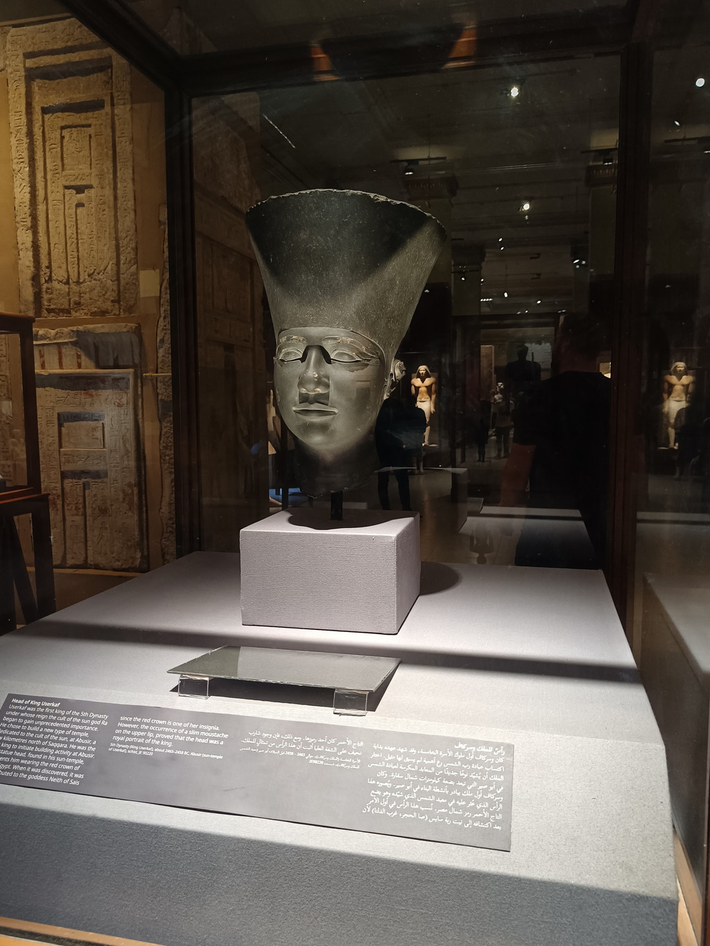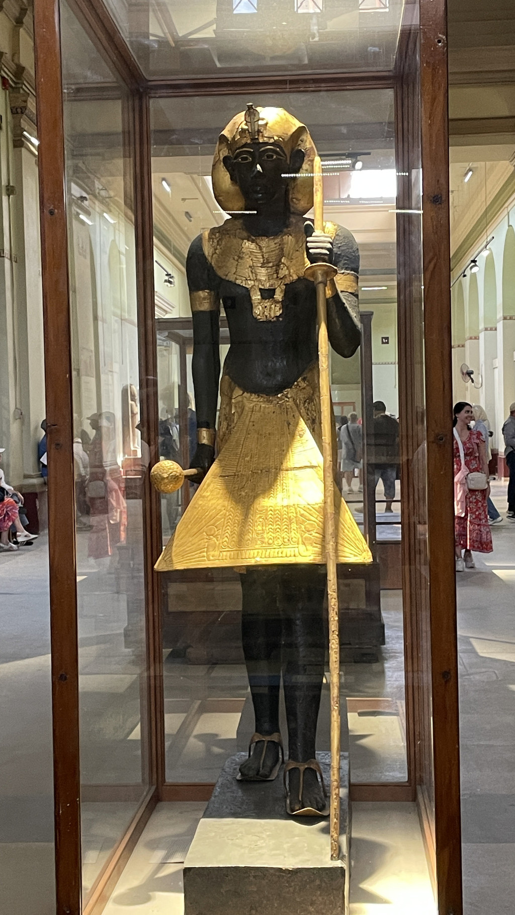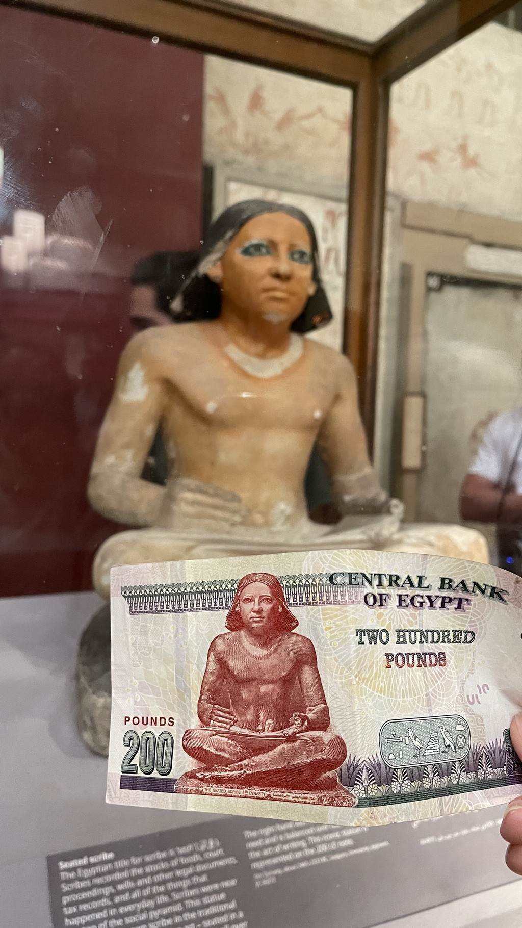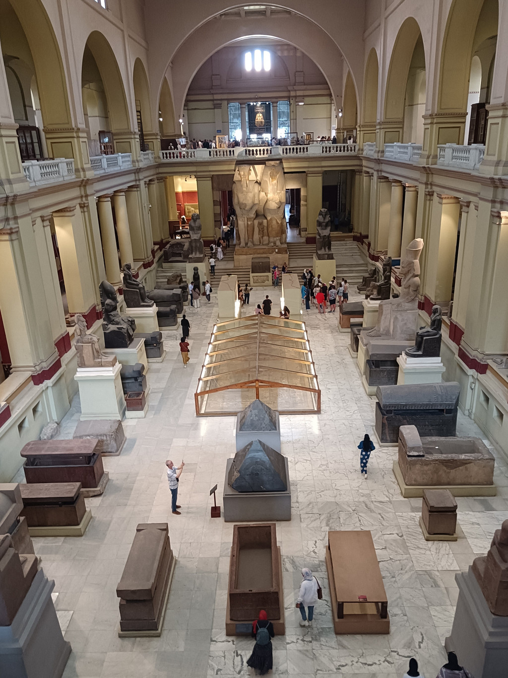 D2:开罗第二天~埃及博物馆。门票刷卡450埃磅,每个人门票的图案不同。以前,景区门票还可以让埃及人代买,再给他挨镑的现金。但是有好多人就装自己腰包了,然后政府也收不到钱,所以现在所有的门票都是必须刷卡,有VISA和马自达卡。我们请个中文讲解,否则看半天也看不出所以然。他讲得不错,还会提问,也会讲笑话,只是中文说得有些口音,我就在旁边翻译。幸亏以前有给香港导演做翻译的经验。为了不耽误导游的时间,我们先跟着他听,后来细细又逛了一圈。合影后想约最后回开罗去参观新开张的博物馆。体力、精力的付出加知识点的狂轰乱炸,我们三点才出去吃饭。又是在北京一年吃不到一次的垃圾食品,吃得太饱,连晚饭都省了。