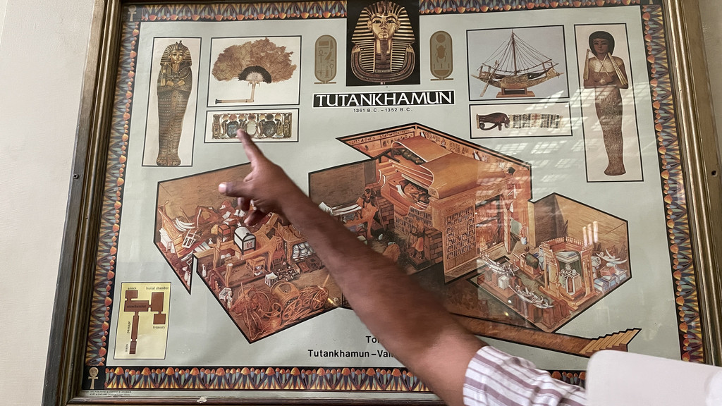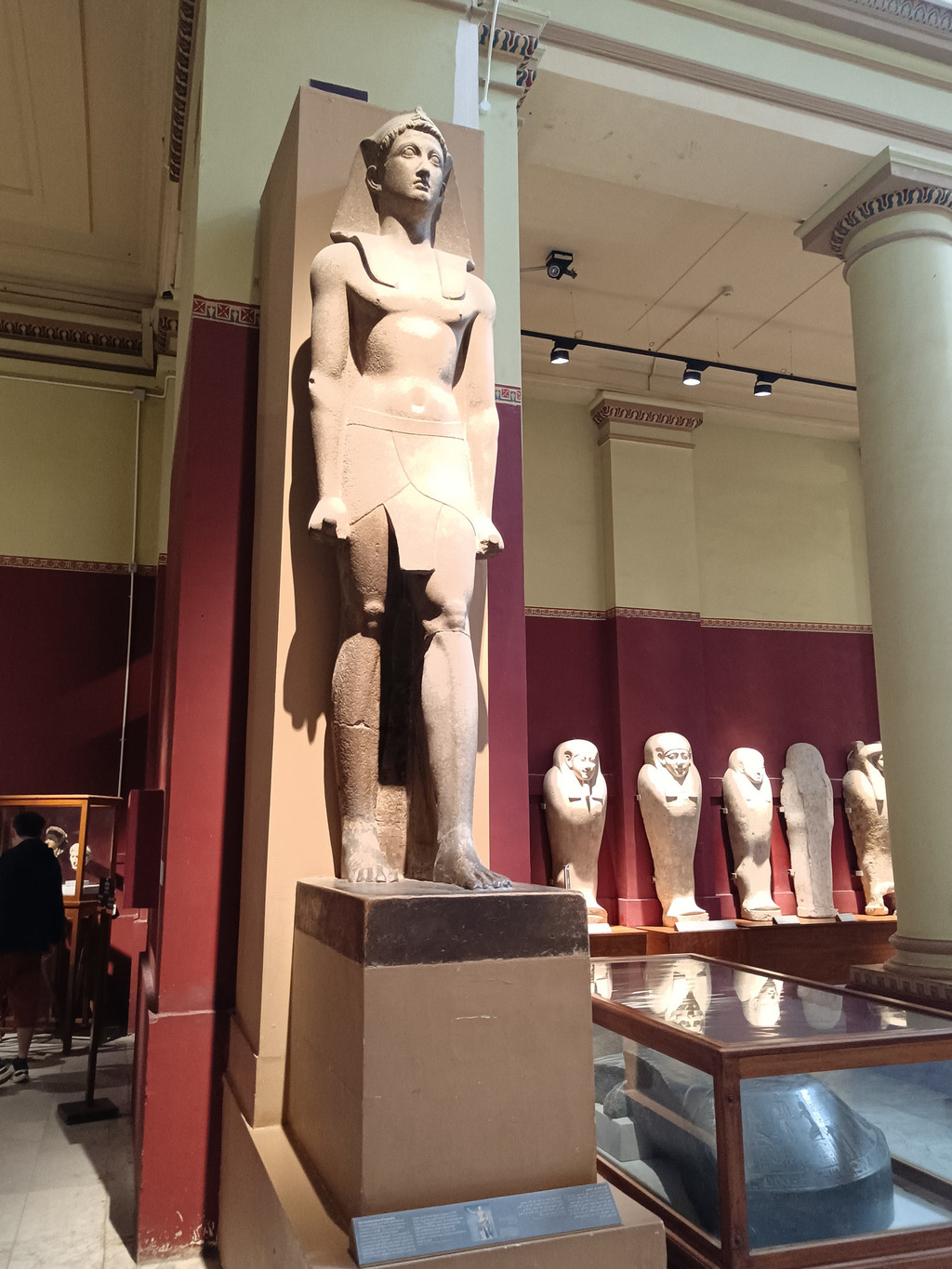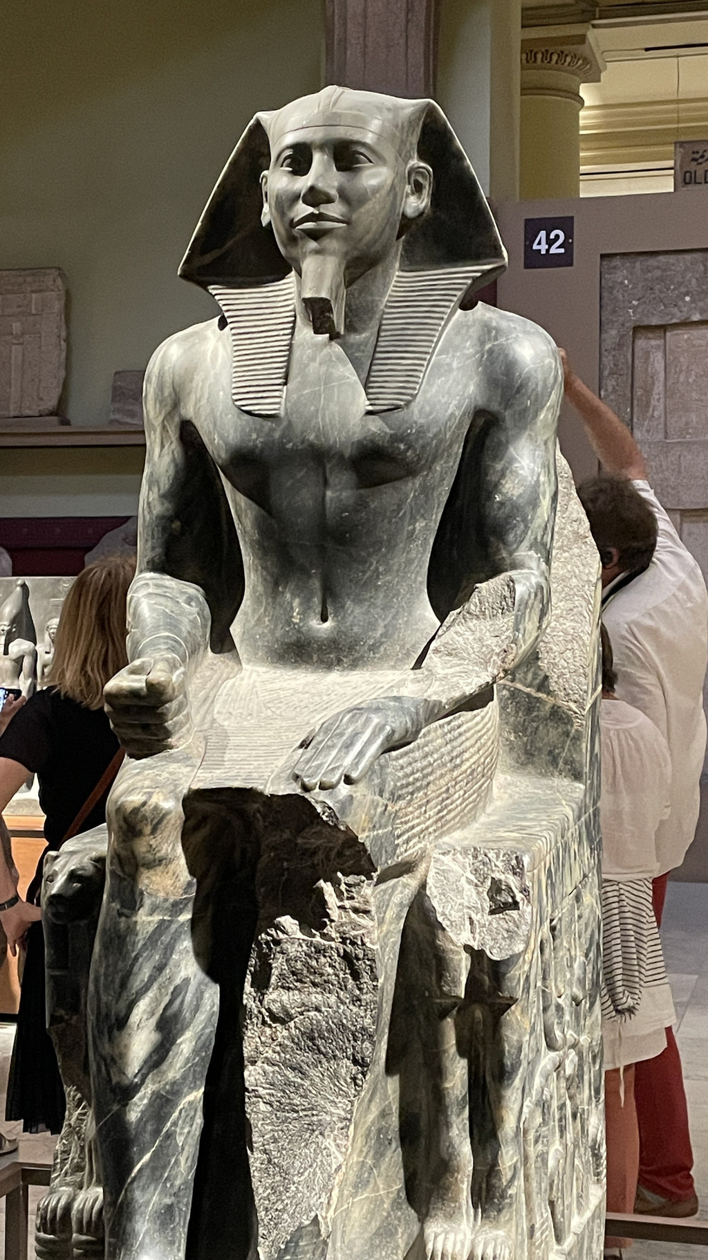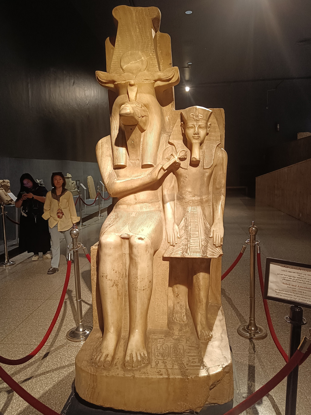 D2:开罗第二天~埃及博物馆。门票刷卡450埃磅,每个人门票的图案不同。以前,景区门票还可以让埃及人代买,再给他挨镑的现金。但是有好多人就装自己腰包了,然后政府也收不到钱,所以现在所有的门票都是必须刷卡,有VISA和马自达卡。我们请个中文讲解,否则看半天也看不出所以然。他讲得不错,还会提问,也会讲笑话,只是中文说得有些口音,我就在旁边翻译。幸亏以前有给香港导演做翻译的经验。为了不耽误导游的时间,我们先跟着他听,后来细细又逛了一圈。合影后想约最后回开罗去参观新开张的博物馆。体力、精力的付出加知识点的狂轰乱炸,我们三点才出去吃饭。又是在北京一年吃不到一次的垃圾食品,吃得太饱,连晚饭都省了。