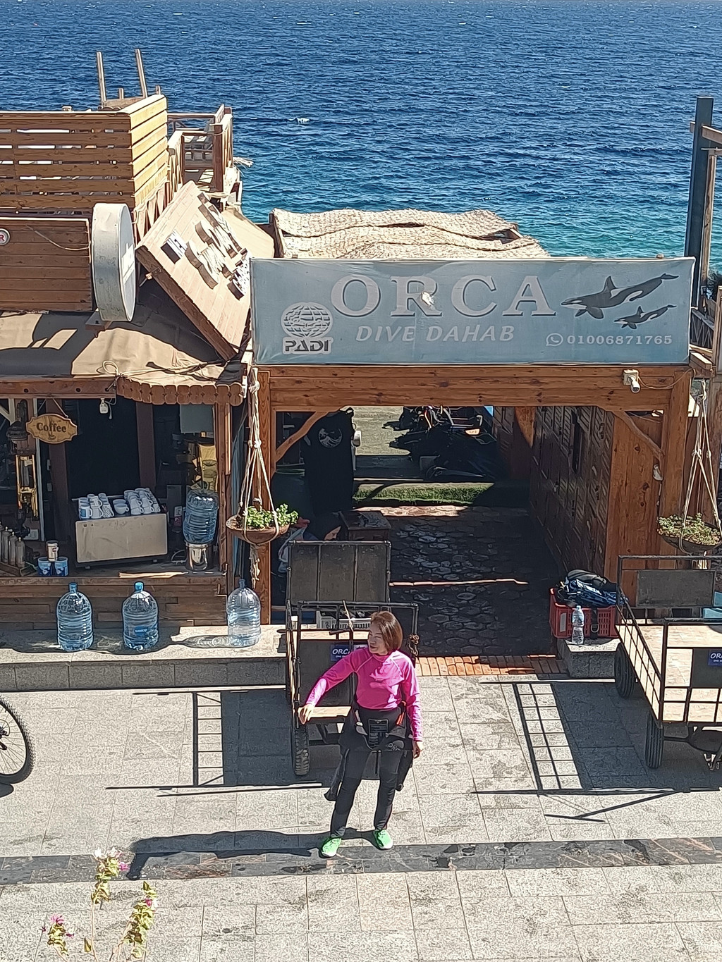 坐大巴去达哈卜,行李付费,卖票的给行李上贴条时,非要给我的随身包贴一张,我大叫起来,他才停手。100磅两件,后来才听说,只缴5磅就行,其余都是多收的,又缴学费了。开了一会,司机让当地的一位女士帮着问,我们是否遇到麻烦,还带着我们到达哈卜的站点投诉,虽然某些埃及人小坑小骗,但绝大多数都是善良友好的。行程中给自己刮刮痧,把不愉快都留在上段旅程。同伴找到有中文潜导的潜店询问考证的事。然后找住宿。经过一番讨价还价,最终2500磅6天,核60元一天,还能做饭。去市场和超市采购,最贵的是姜和快乐肥宅水。回来做的可乐鸡翅和沙拉,顺便讨论明天菜单。在距离很近的超市买到盐、方便面和大桶水,好幸福。