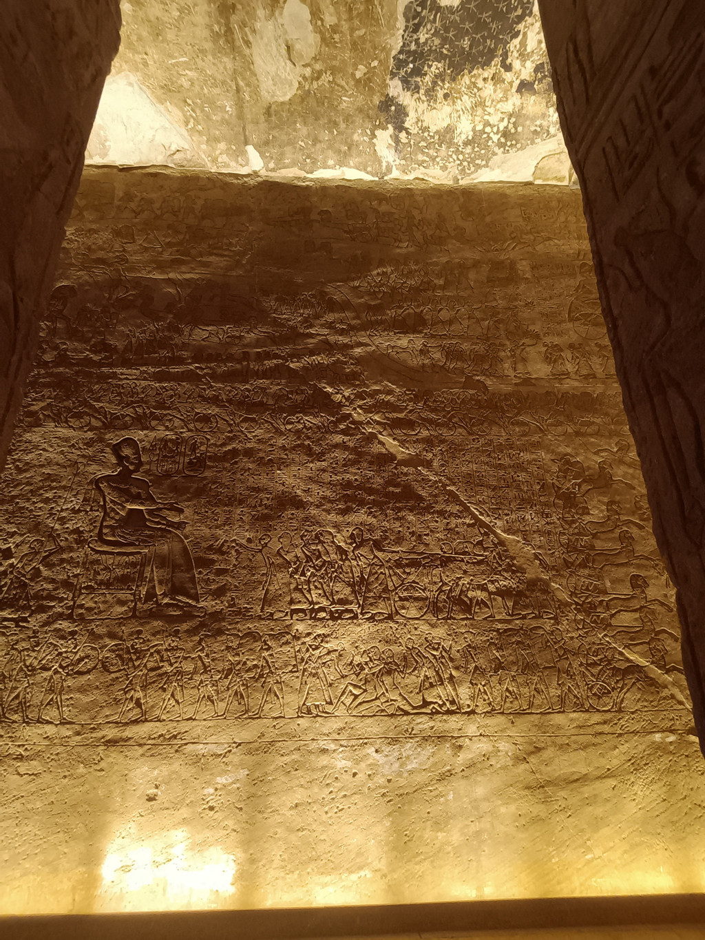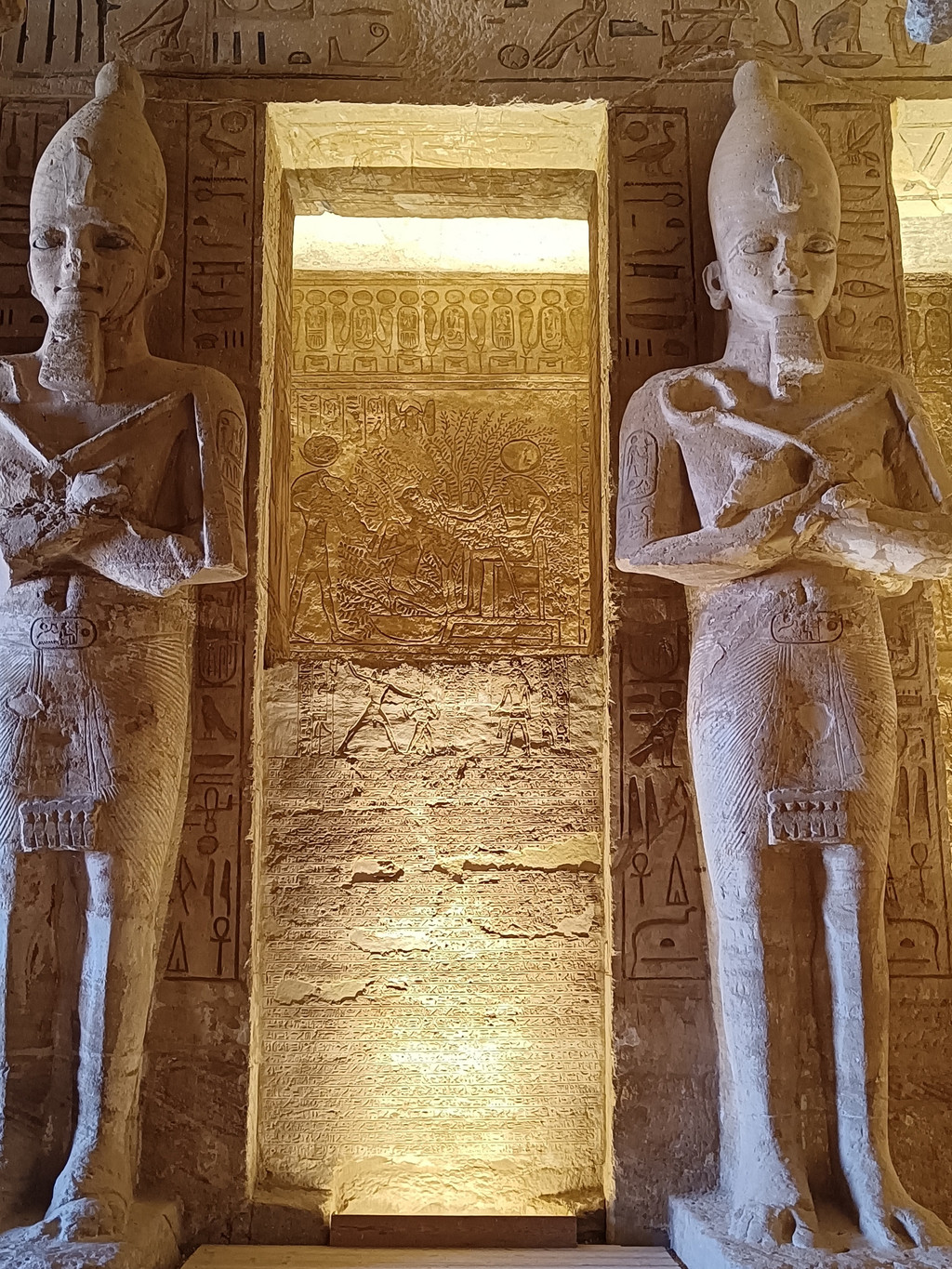 D27(11.10)~阿布辛贝神庙是不去后悔,去了更后悔的所在。需要花整一天的时间,门票最贵,765磅。售票处的说可以用现金买一张,估计这钱就装他腰包。走进景区,先是一条弯曲小路,转角豁然开朗,出现两个大门。欧美游客还是很多的,正门守门的工作人员会找欧美游客,让他们拿着生命之匙拍照,只是不知道他会要多少钱。阿布新贝地方小,里面的雕像,虽然精美,但毕竟面积小嘛,感觉没有卡纳克神庙和哈布城,性价比比较高。不过传奇性很高,为了修建阿斯旺大坝,把阿布辛贝神庙整体搬迁,请了联合国教科文组织支援。原本是秋分那天,10月22日,太阳光刚好照到神像的脸上。现在拆迁之后,时间差了一天,10月23号。所以还是很佩服古人。