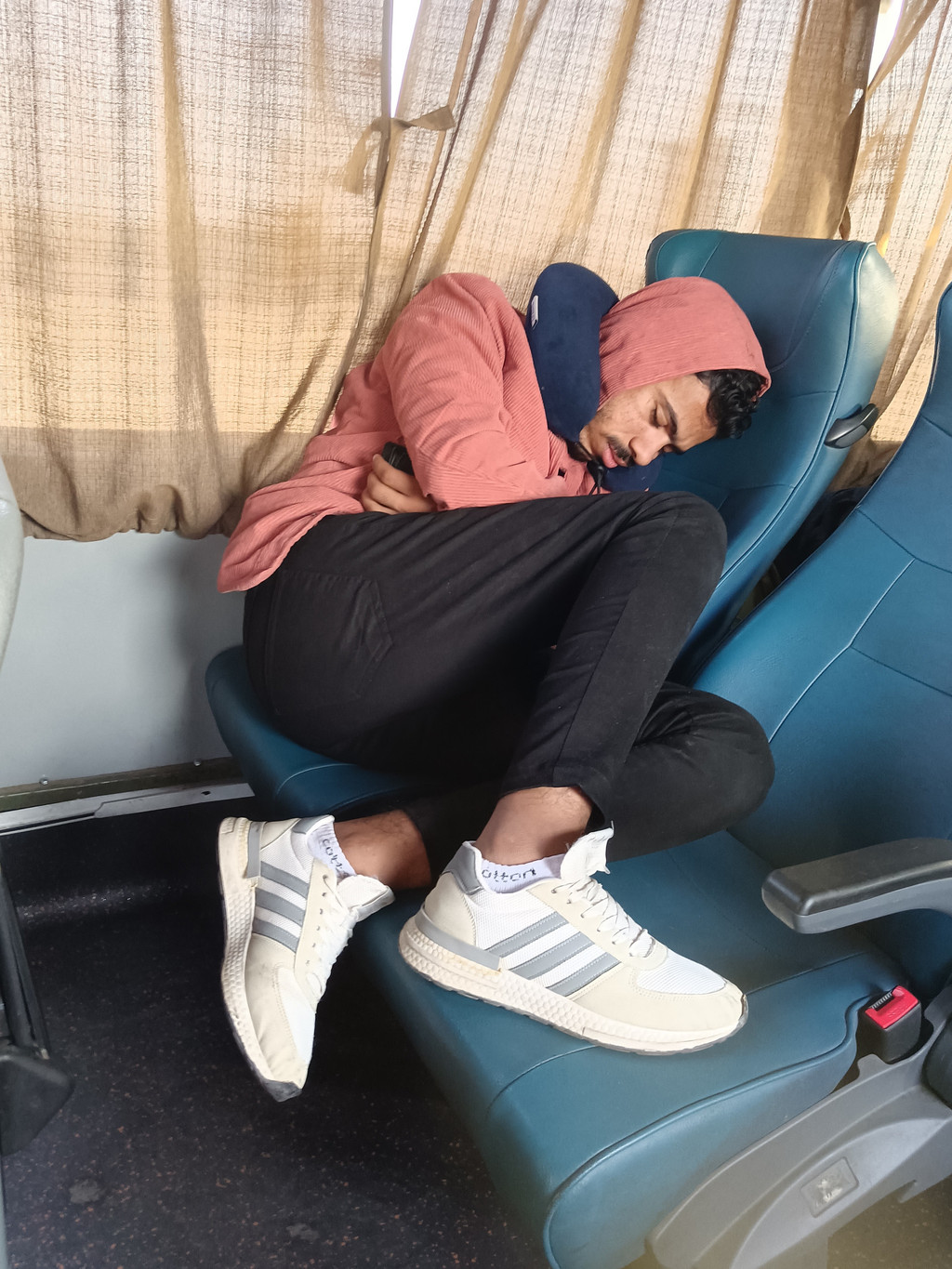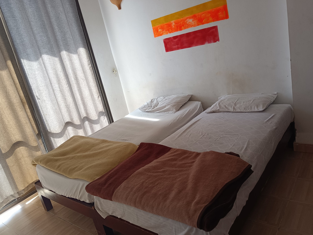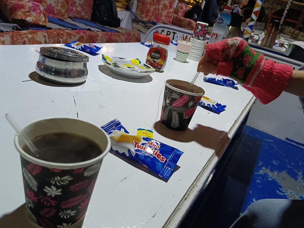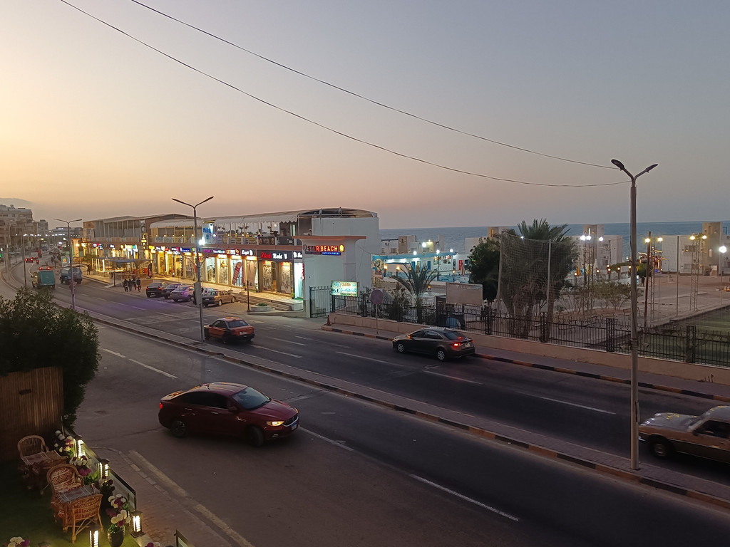 D21(11.4)~补充一下,夜巴今晨在苏伊士检查行李时,看到有男士穿短裤,觉得他们身体真好,后来看见一位穿薄外套的在打哆嗦,我就赶紧把羽绒服穿上了。图1的小哥行事比较豪放,下次小桌板放食物前一定要清洁几遍。本来在booking看见一家民宿5美金,加上税也不过8美金,无奈房东没留电话。我们只是从gobus站点打车到附近街道,没办法只能在附近找,同伴问了家酒店,1300磅。我去问了家报价900磅,本来想再找找,结果小哥追出来,就砍到1000磅两晚,约等于每晚72元人民币,还是带阳台海景房呀!我是砍价小能手(达哈卜也是我砍滴)入住后到附近简单吃一餐,看到附近有家乐福,不过没怎么买,否则还得背到下一站。